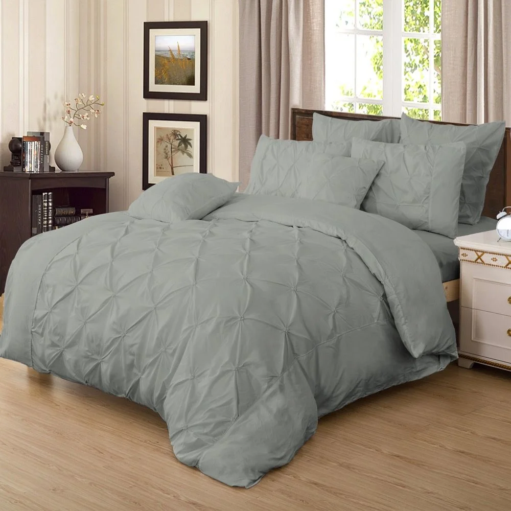Diamond Pintuck Super King Size Grey Duvet Quilt Cover Set