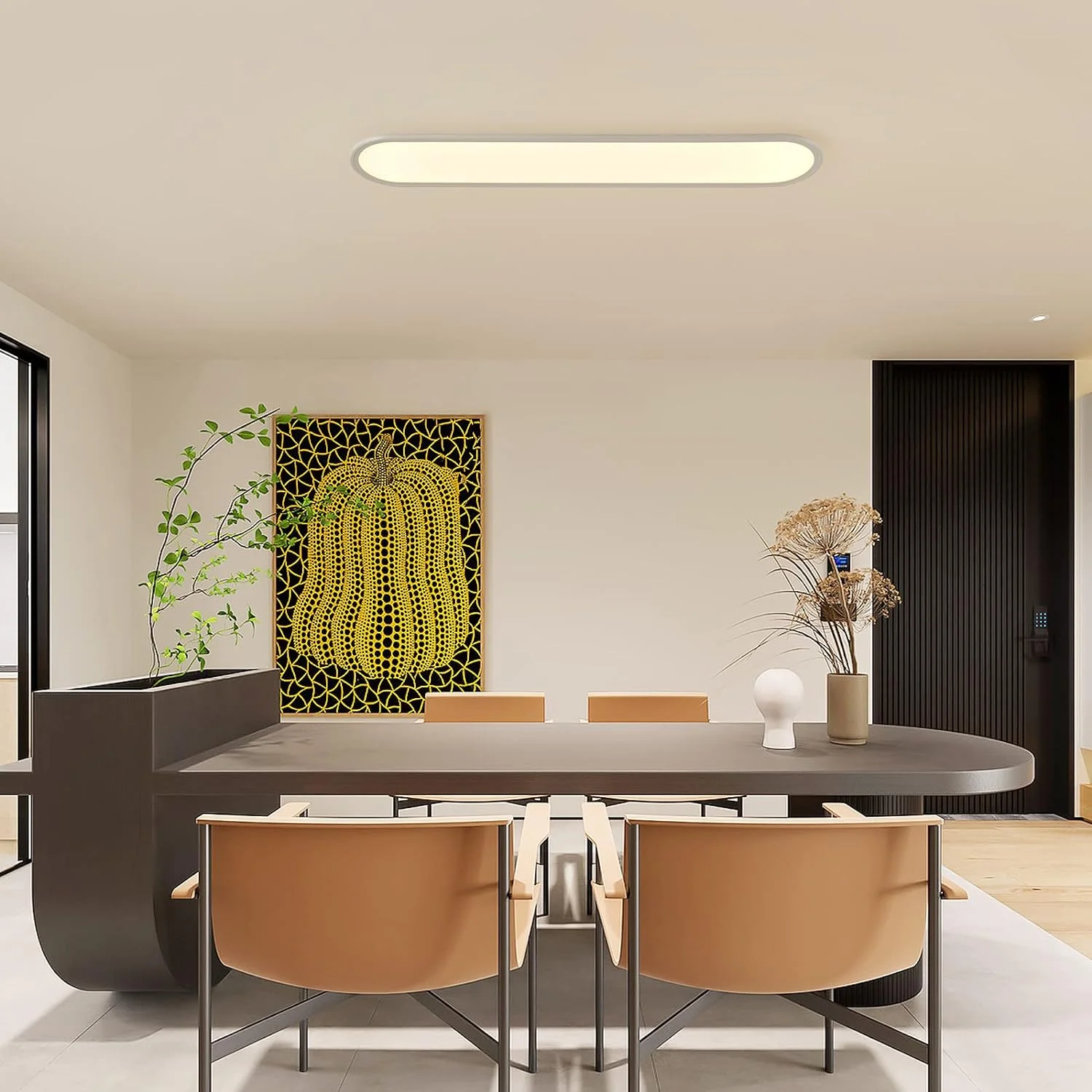 - Enjoy brilliant yet gentle light with our flush mount light fixture. With 2880 lumens of brightness, it's much brighter than other ceiling lights but without being harsh. Plus, it's low wear and durable, with an average lifespan of 50,000 hours. And you'll save energy too - it's 85% more efficient than traditional 240W incandescent lamps, so you'll save on lighting electricity costs.