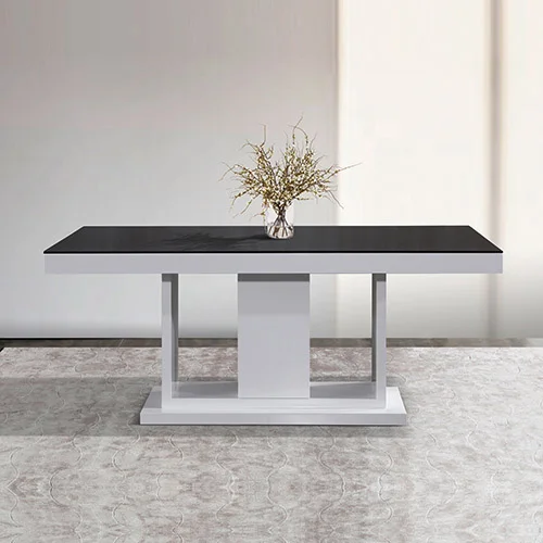 A high gloss finish in white & black colour combine to make this Dining Table an essential piece of furniture for your living room. A thick rectangular MDF top makes for a secure surface to hold any necessary item. The contemporary design ensures this dining table will make a stylish statement piece of furniture for any modern home.