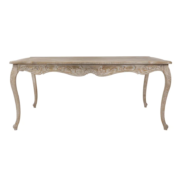 Lille dining table exudes vintage look with its design and colour. White washed finish on the dining table presents a timeless look that will stand out in any living room. The top of the table is enough spacious to meet your need.
