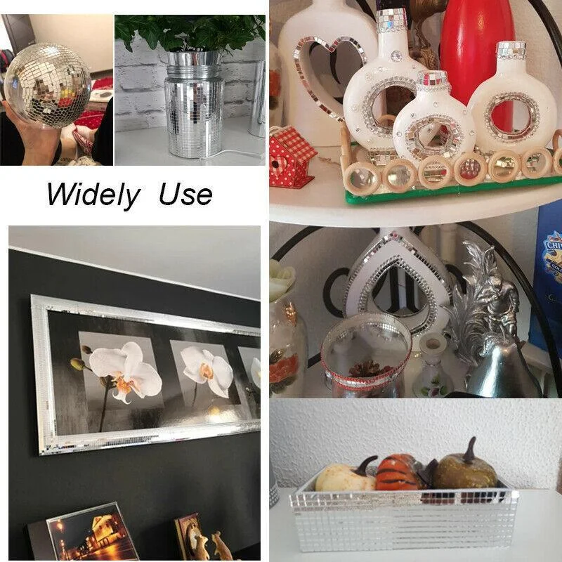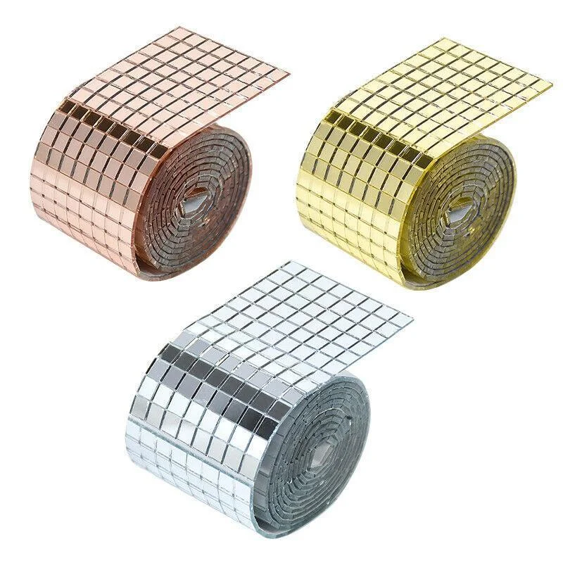 Enhance your living space with our DIY Mini Mosaic Tiles! These self-adhesive square mirror tiles are perfect for adding a touch of glamour and intrigue to any wall or project. With a pre-cut, self-adhesive backing, these tiles are a breeze to install without the hassle of glue. Plus, the ability to combine them in countless configurations ensures a unique design to suit your style. Made from eco-friendly acrylic, these tiles are not only aesthetically pleasing but also environmentally conscious. Whether you're refreshing a room, creating a disco ball or working on a craft project, these tiles offer the versatility and elegance you're looking for.