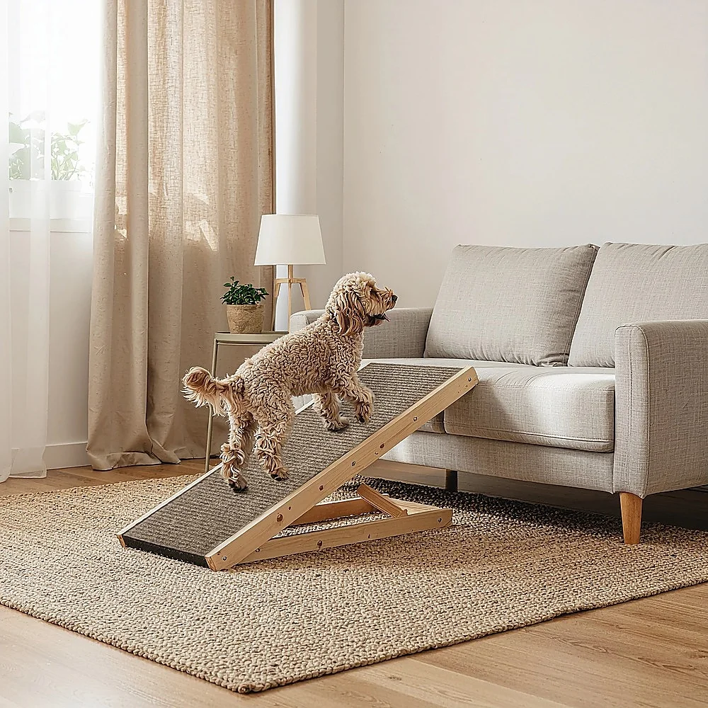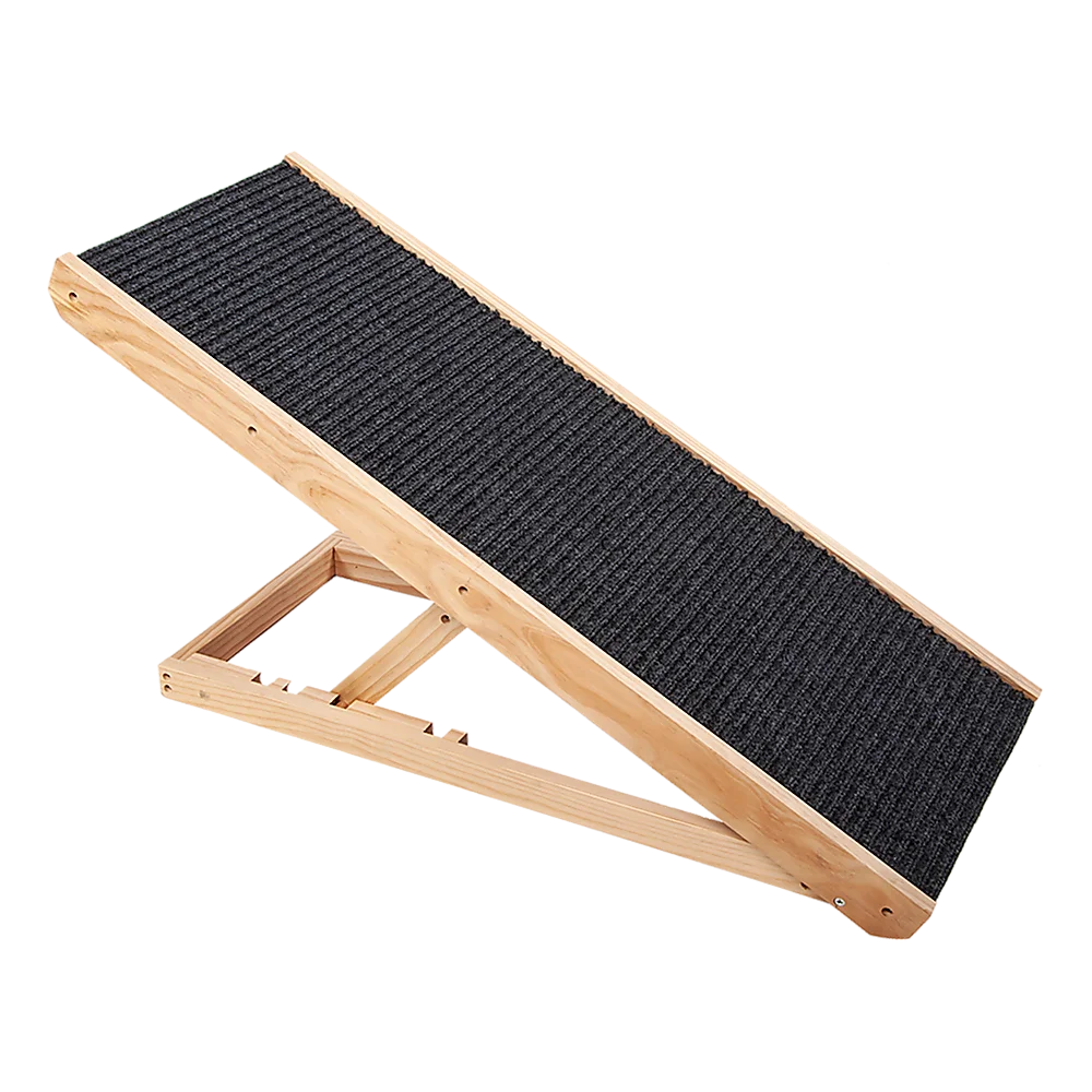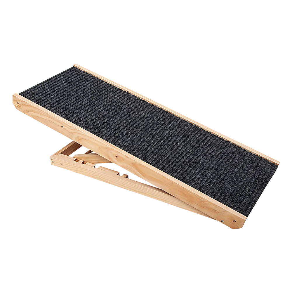 For senior pets, a ramp is easier on the joints than pet stairs since it's a steady incline. Its adjustable height allows you to use it with a wide variety of vehicles or other uses. Easily foldable and storable, this ramp is also portable take it with you anywhere you go. Its sturdy hinge and non-slip surface support pets up to 35 kilogrammes.