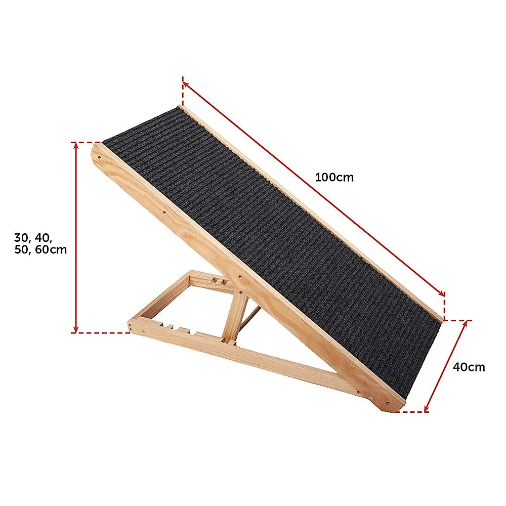 Crafted from durable plywood and natural timber, this free-standing ramp is perfectly sized for small to medium dogs or other small animals. A non-slip carpet surface makes it easy for your dogs to navigate the climb.