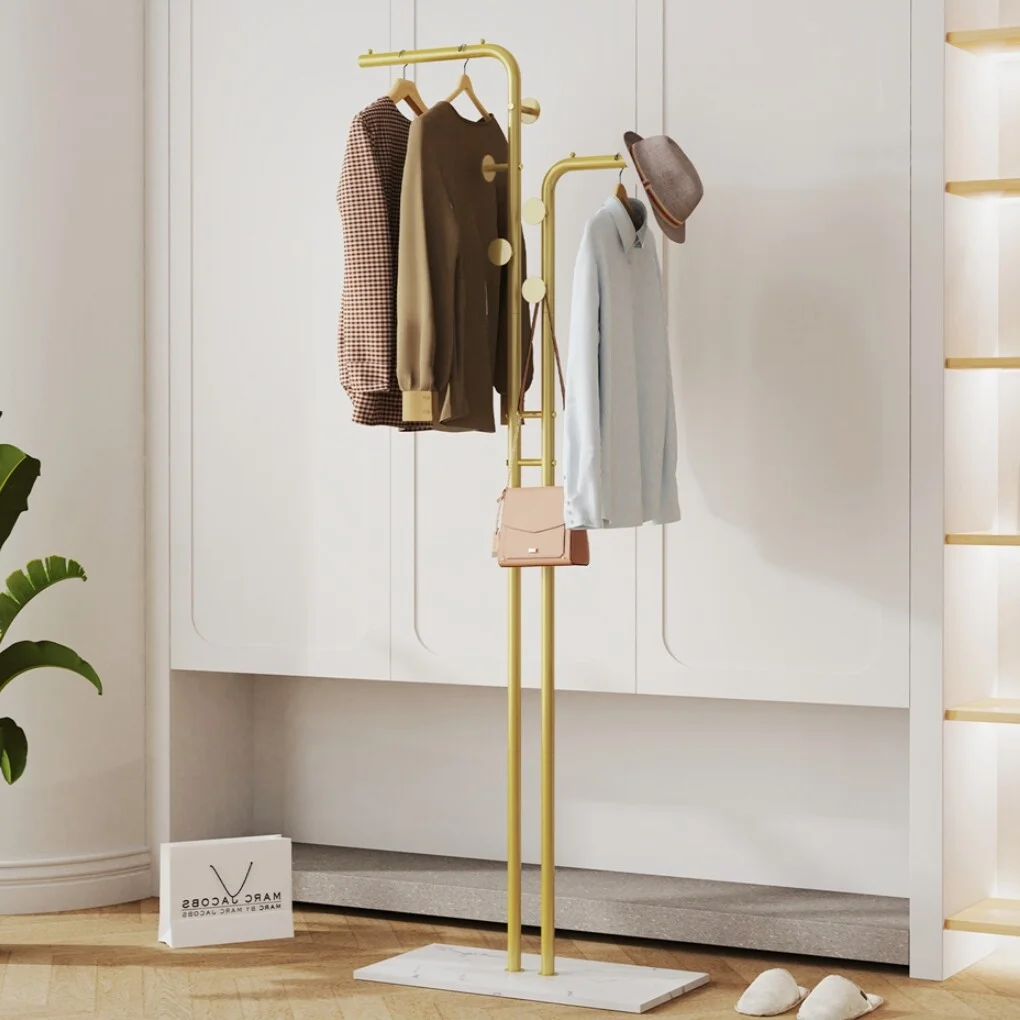 White and Gold Combination -This unique clothes rack provides practicality and style for everyday life, masterfully combining white and gold color, exude an air of timeless elegance and glamours, enhancing its overall aesthetic appeal, effortlessly blends with variety of decors, only serves the purpose of keeping your coats neatly organized, but also creates a visually appealing and clutter-free space in your home