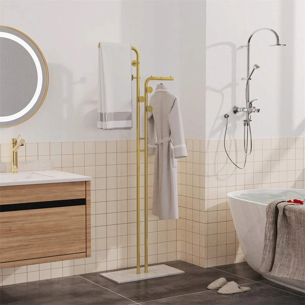Sturdy Floor Stand -The hall tree coat stand is crafted from metal with gold-painted treatment for being anti-rust and anti-deformation, making it durable and reliable to protect coats from wrinkles and damage, equipped with a heavy granite stone base to enhance stability and wont tip over