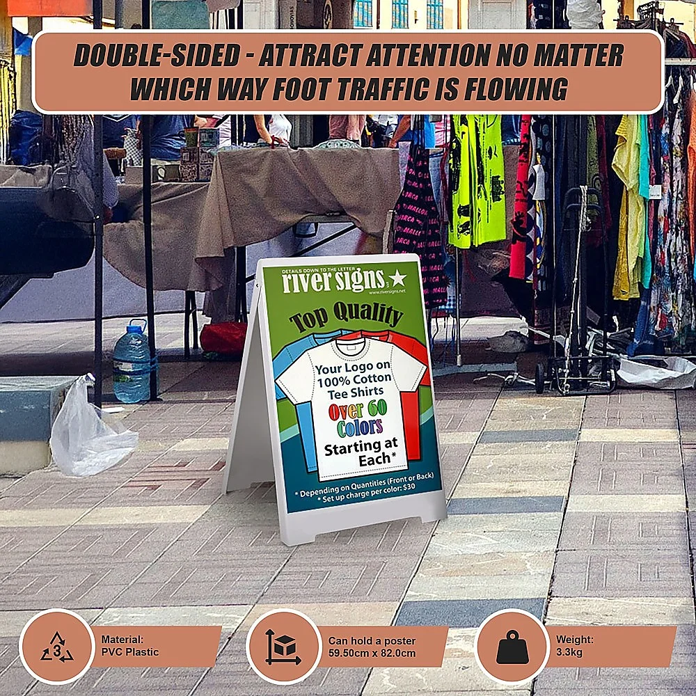 Perfect for advertising outside cafes, restaurants, shops and salons, this A-frame sign is also great for festivals, outdoor stalls, street food outlets, conventions, trade shows, conferences or anywhere you need to get a message across to your audience.