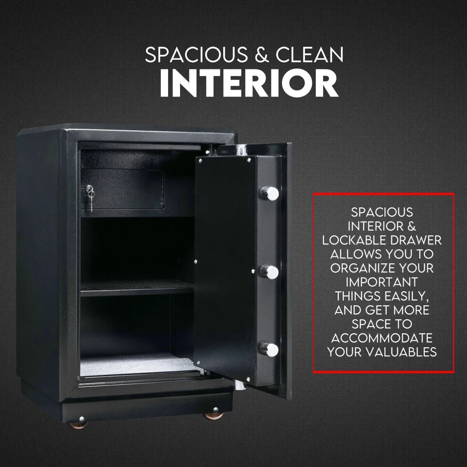 The safe also comes with an extra key and drawer box keys so that you can always retrieve your belongings when needed. Rest easy knowing that your valuable assets are protected.