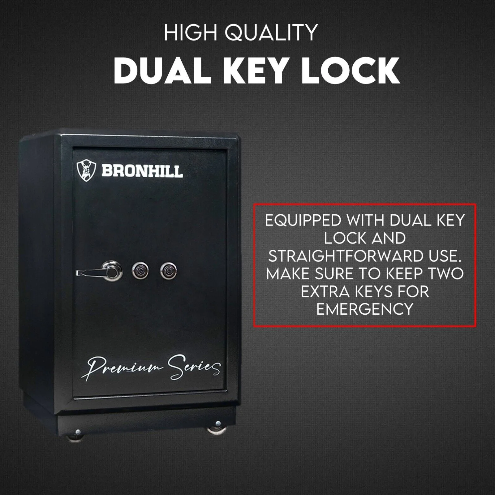 Protect your treasured belongings and documents with the Dual Key Lock Safe from Bronhill.