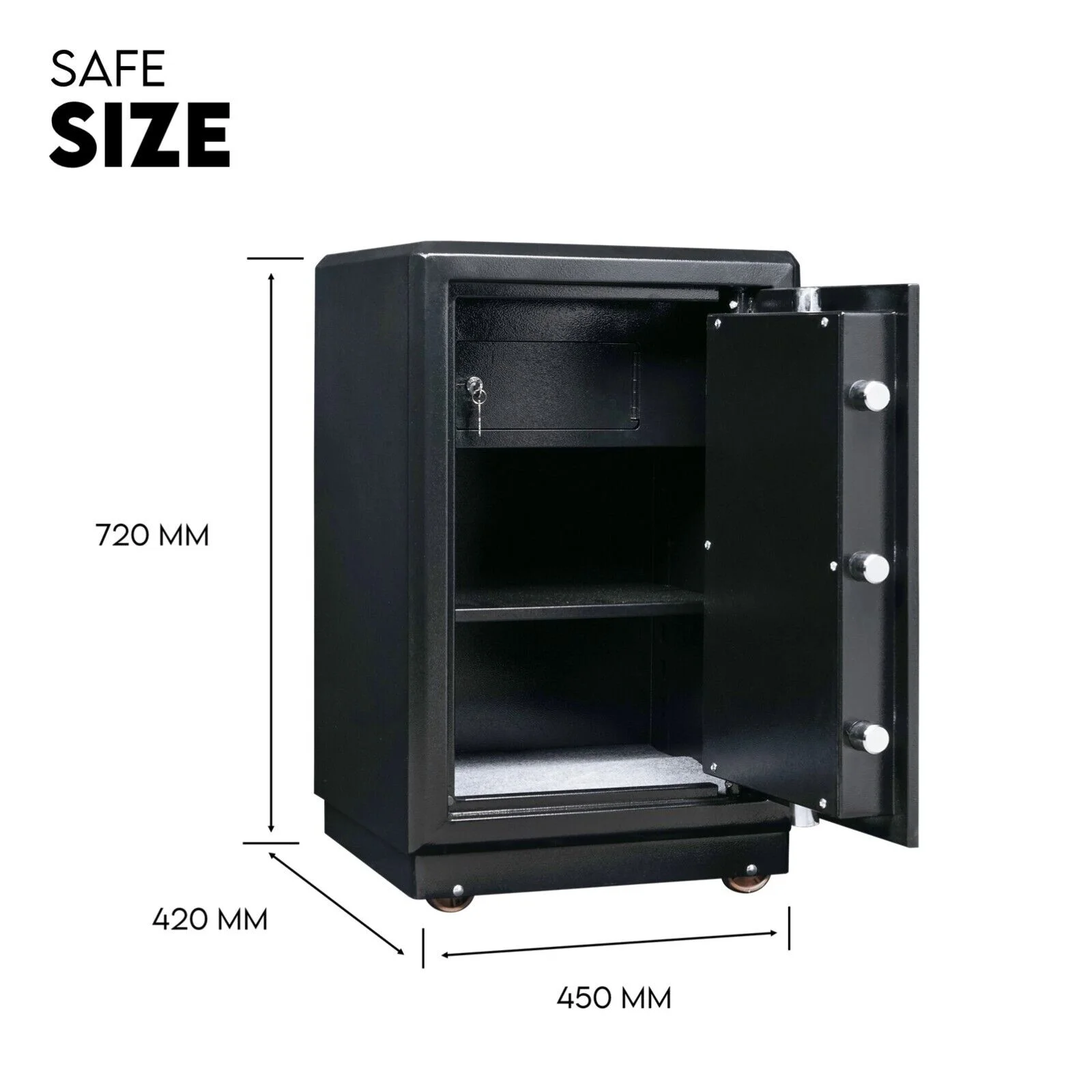 This dual key lock protected safe is ideal for home or business and is extra-large so that you can securely store your cash, jewelry, documents, passports, and more.
