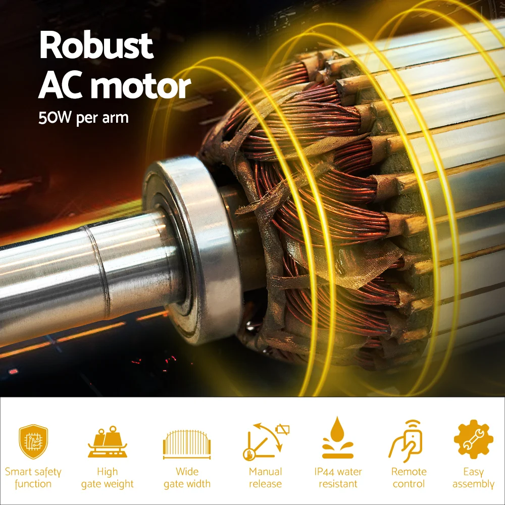 Ditch the manual gate duty with this secure and convenient solar-powered automatic gate opener. This system can handle heavy gates up to 10 meters long and weighing 600kg. It operates smoothly with gentle start and stop features, and prioritises safety with automatic stop or reverse if it detects an obstruction. No worries about power outages either, as an emergency release key allows manual gate operation. For added convenience, you can program the auto-close feature between 0-99 seconds. The weather and dust resistant control box ensures reliable operation, and two programmable remote controls come included. This versatile system works with various gate types, from steel and wood to vinyl, in panel, tube, or even chain-link styles.