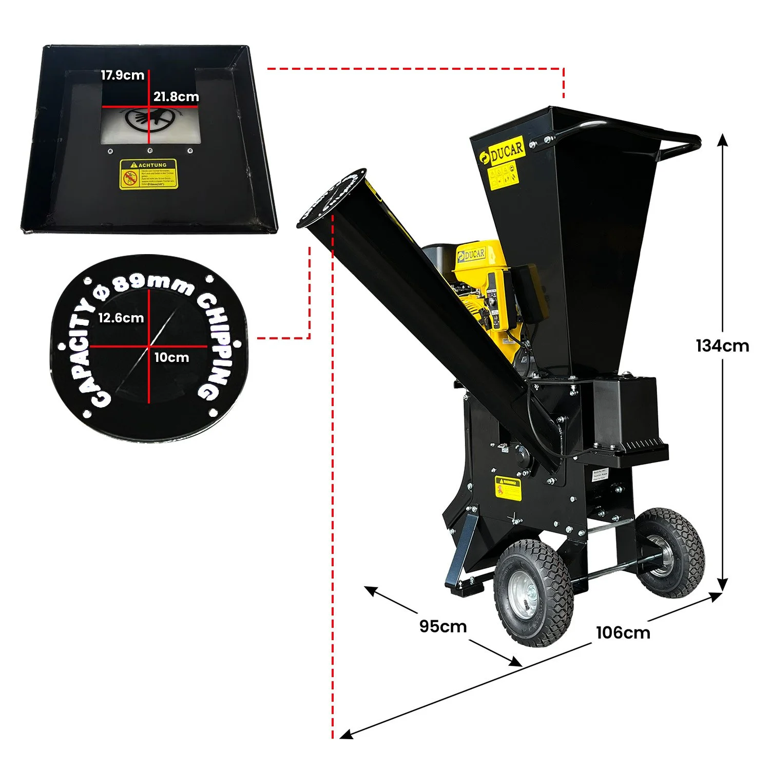 Dont let your garden waste just sit there! The Ducar 601C Wood Chipper is here to help you turn those branches and debris into useful wood chips. With its powerful 420cc OHV 4-stroke engine, youll get a whopping 15HP at 3600 RPM. Its blade speed of 2400 RPM can handle chipping up to 89mm, making tough yard clean-ups a breeze.