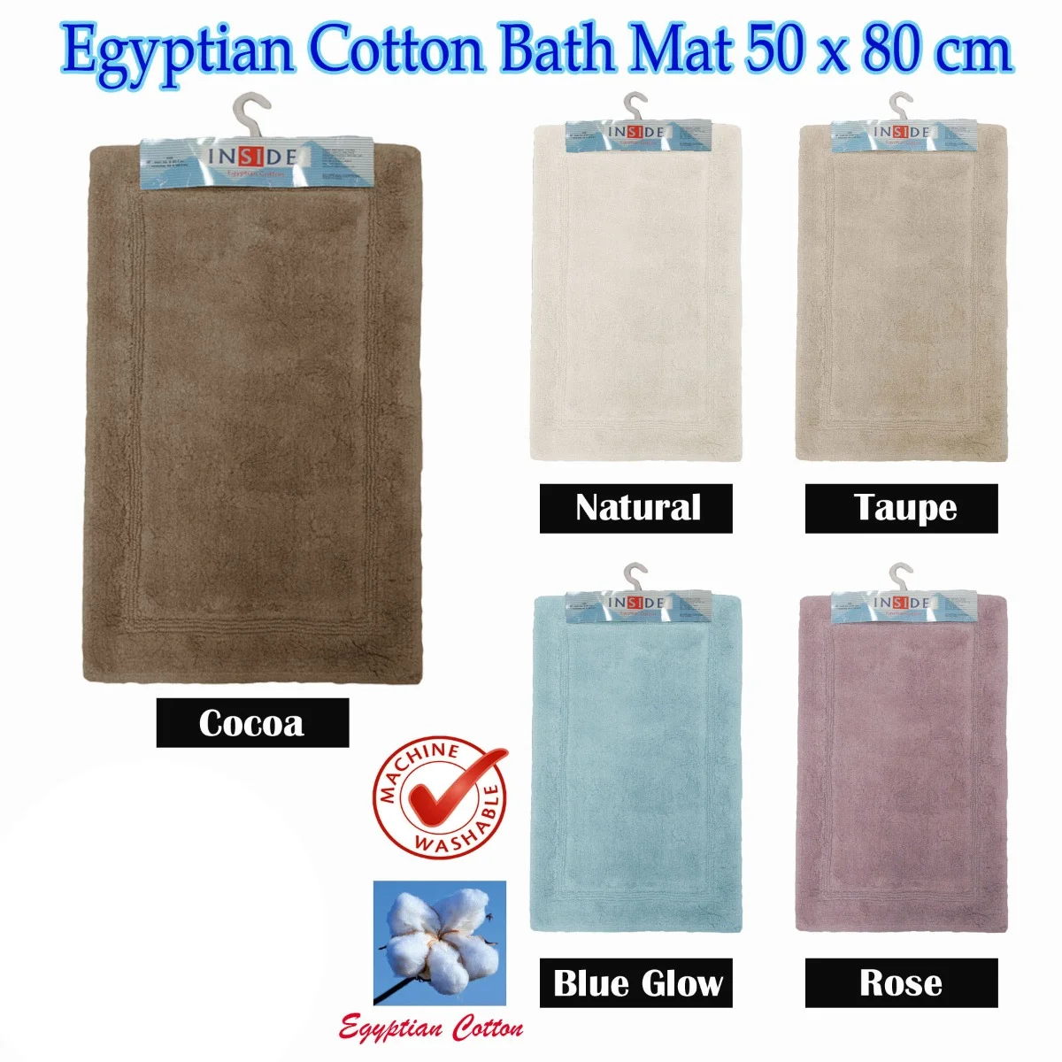 Freshen up your bathroom with this luxurious Egyptian Cotton Bath Mat 50x80 cm. It is made of 100% percent Egyptian cotton, ultra absorbent, and comes in a stylish design. There is no rubber back on these bath mats for non slip feature.