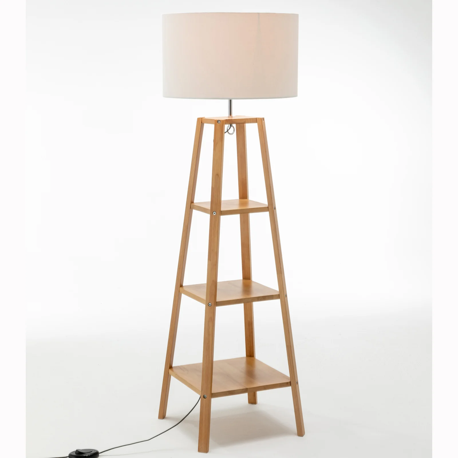 LARGE BAMBOO TRIPOD FLOOR LAMP Linen Shade Modern Light Vintage Wooden Scandi