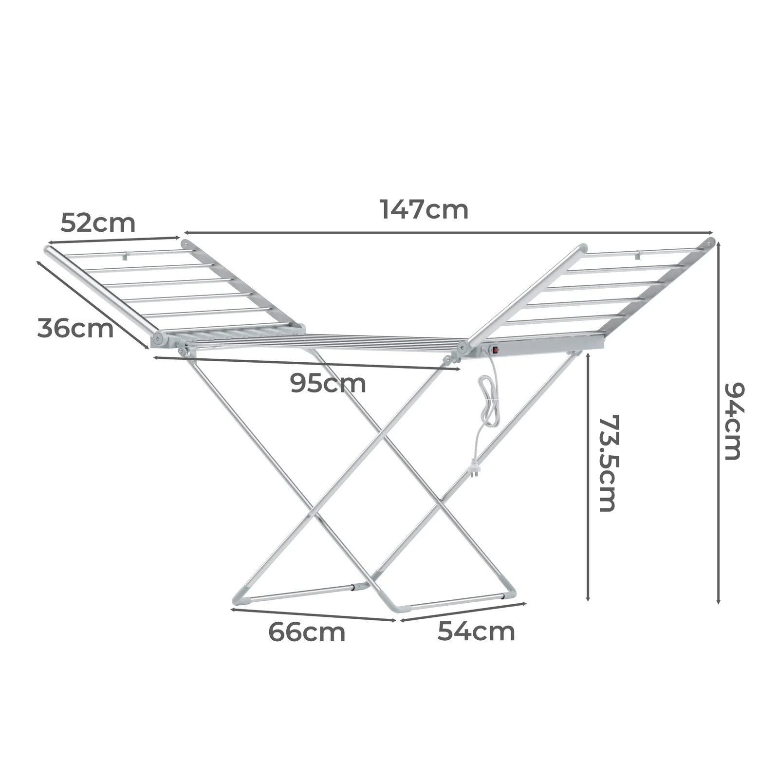Enhance your indoor drying experience with this Electric Heated Foldable Clothes Dryer Rack. Combining convenience, efficiency, and style, this heated drying rack provides an ideal solution for drying clothes indoors, especially during rainy or cold seasons when outdoor drying isn’t feasible. Compact and foldable, it is easy to set up and store, making it a versatile addition to any home.