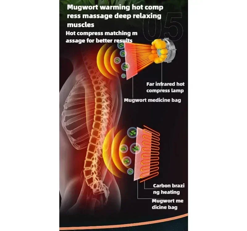Targeted Heat Therapy: Mugwort hot compress zones in the back and waist for deep muscle relaxation