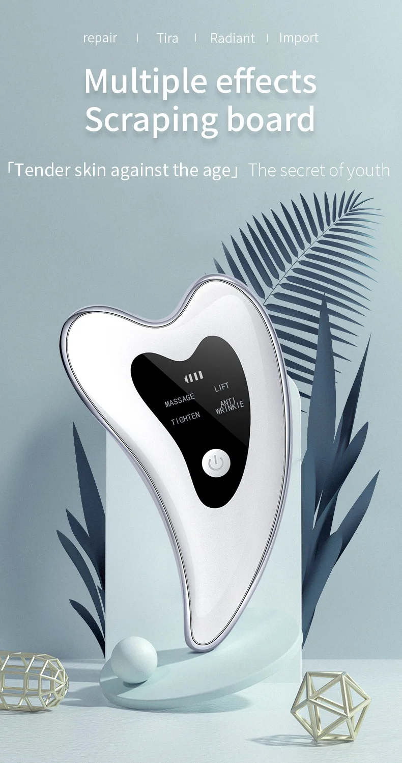 Unlock the secret of youthful, radiant skin with our Multifunctional Electric Gua Sha Scraping Board. This device combines the ancient practice of Gua Sha with four core modern technologies: high-frequency vibration, constant temperature massage, photon light therapy, and ion introduction. It is expertly designed to repair, lift, tighten, and rejuvenate your skin. The ergonomic shape features multiple golden massage points tailored for specific treatments, from face and eye lifting to lymphatic drainage and full-body acupoint massage. Use it daily to relieve muscle tension, reduce fine lines, enhance your chin line, and promote better absorption of your favorite skincare products for a firmer, more youthful complexion.