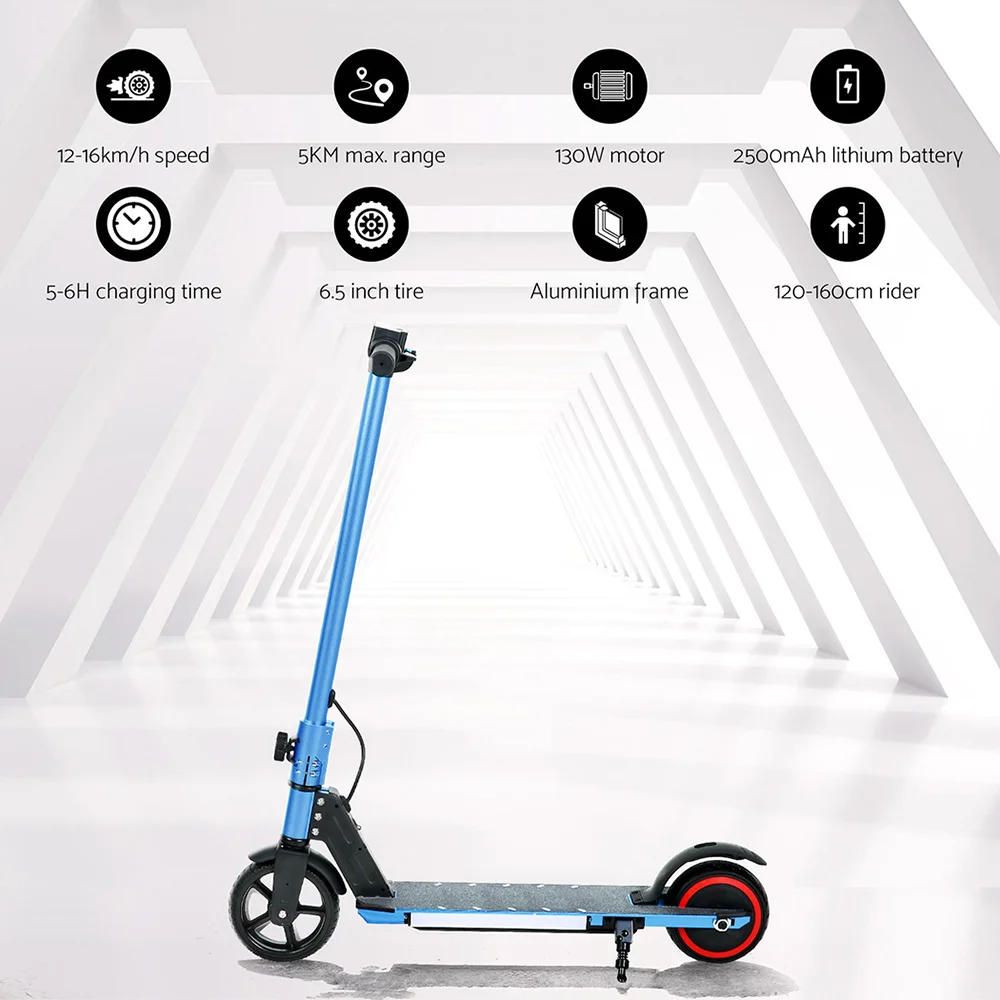 Enjoy fast-paced fun outdoors with your new Electric Scooter. Crafted with a sturdy aluminium frame, and suitable for riders between 120-160cm tall. With its power 130W motor, the scooter can reach speeds of up to 16km per hour, providing a thrilling and safe riding experience. Powered by a 2500mh lithium battery, it offers a range of up to 5km on a full charge, perfect for weekend riding and exploring the neighbourhood. The scooter's comfortable control handle ensures easy maneuverability, while the electric brake and foot brake allow for quick and reliable stopping. The scooter comes with RGB ambient lights, so you can not only customise your ride but enjoy additional visibility. When not in use, it can be easily folded with just one click, making it convenient to carry and store. Unlock a faster way to travel this summer and enjoy hours of fun with your brand-new Electric Scooter.