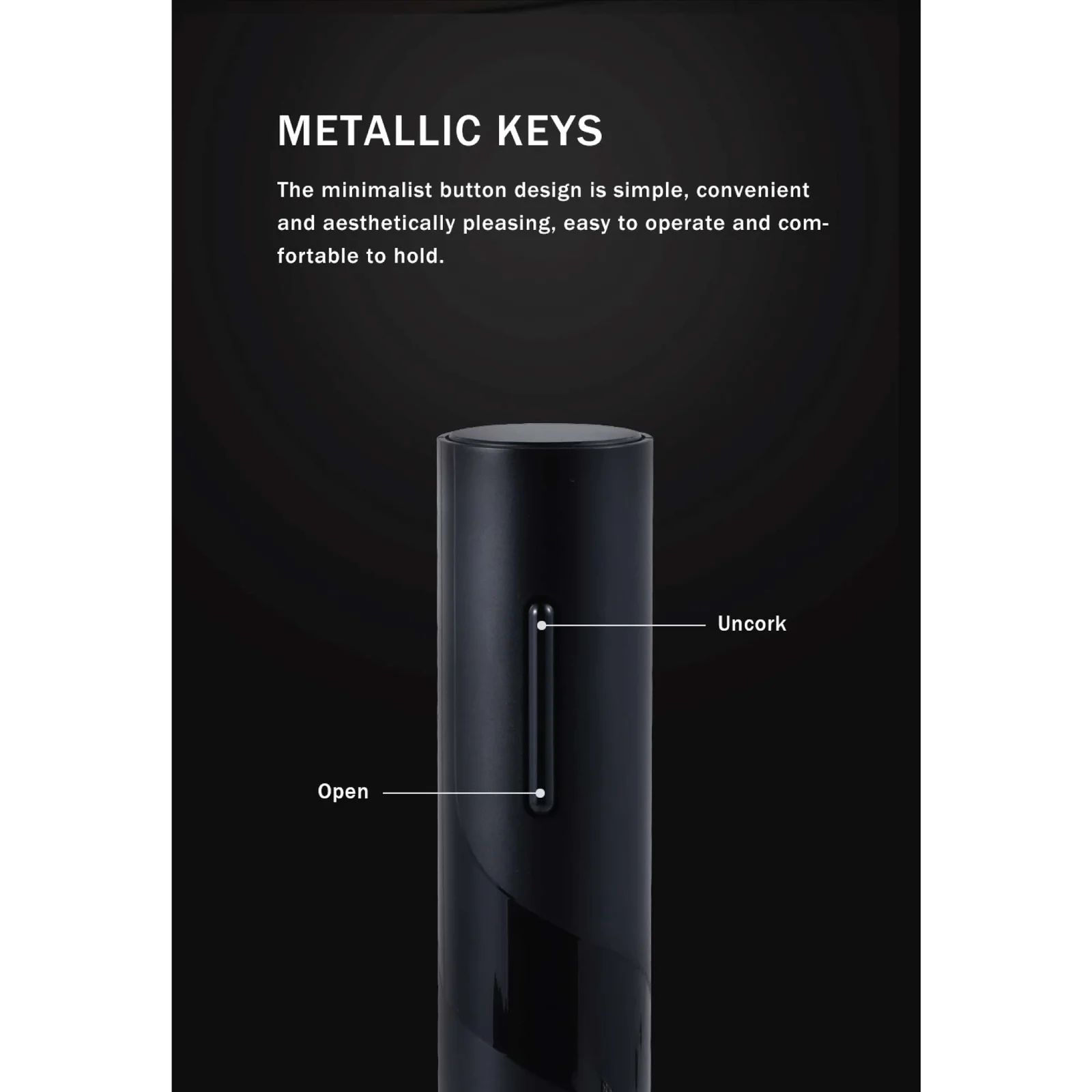 - Press the extract button and hold, slightly pressing the opener body downward and the same time. The spiral will turn in a clockwise direction and enter the cork.