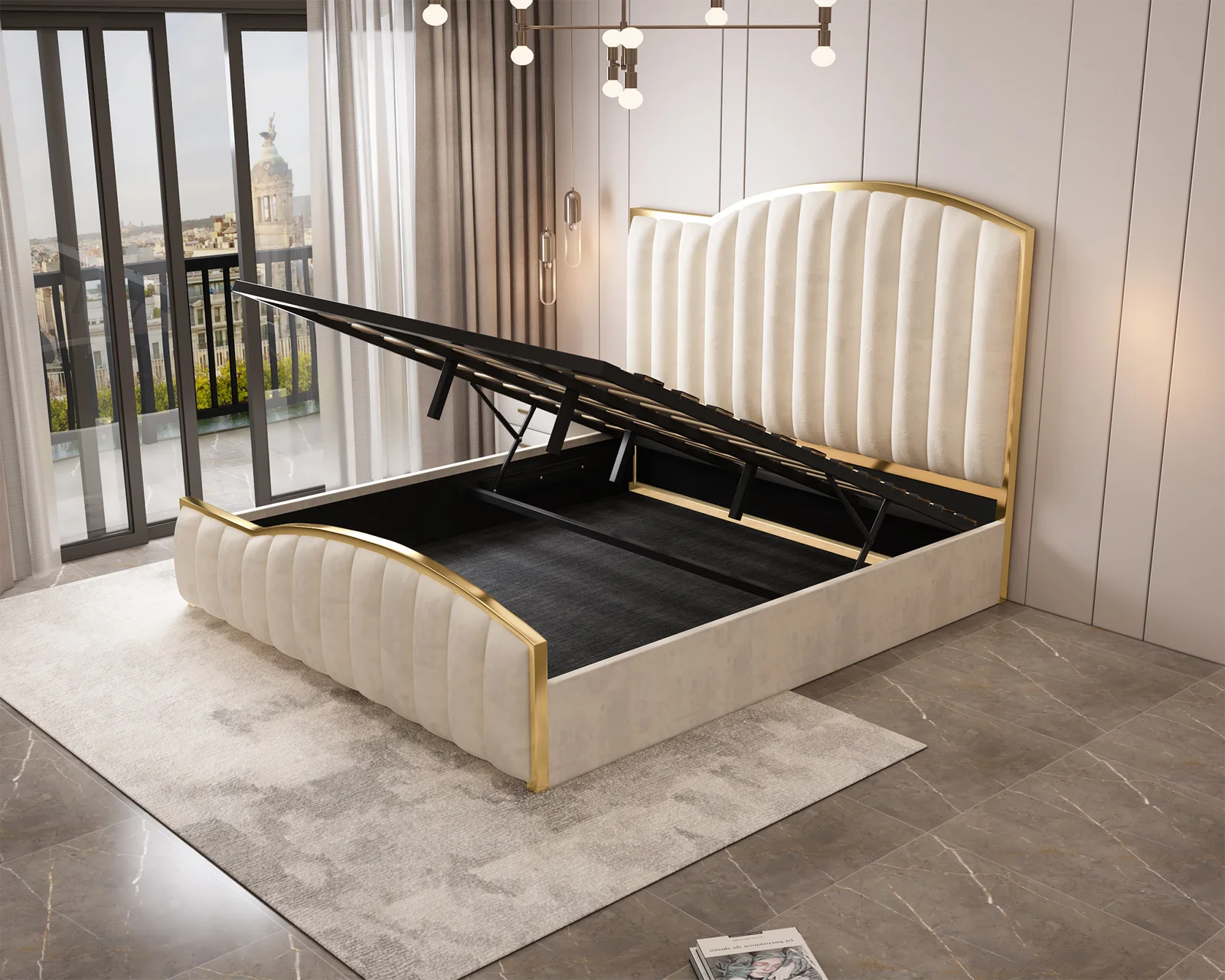 Our newly arrived Starshine bedframe has an Elegant look with its premium velvet fabric in a beige colour. Its beautiful Headboard and Footboard come with a golden metal trim making the bed a perfect fit for a sophisticated bedroom.