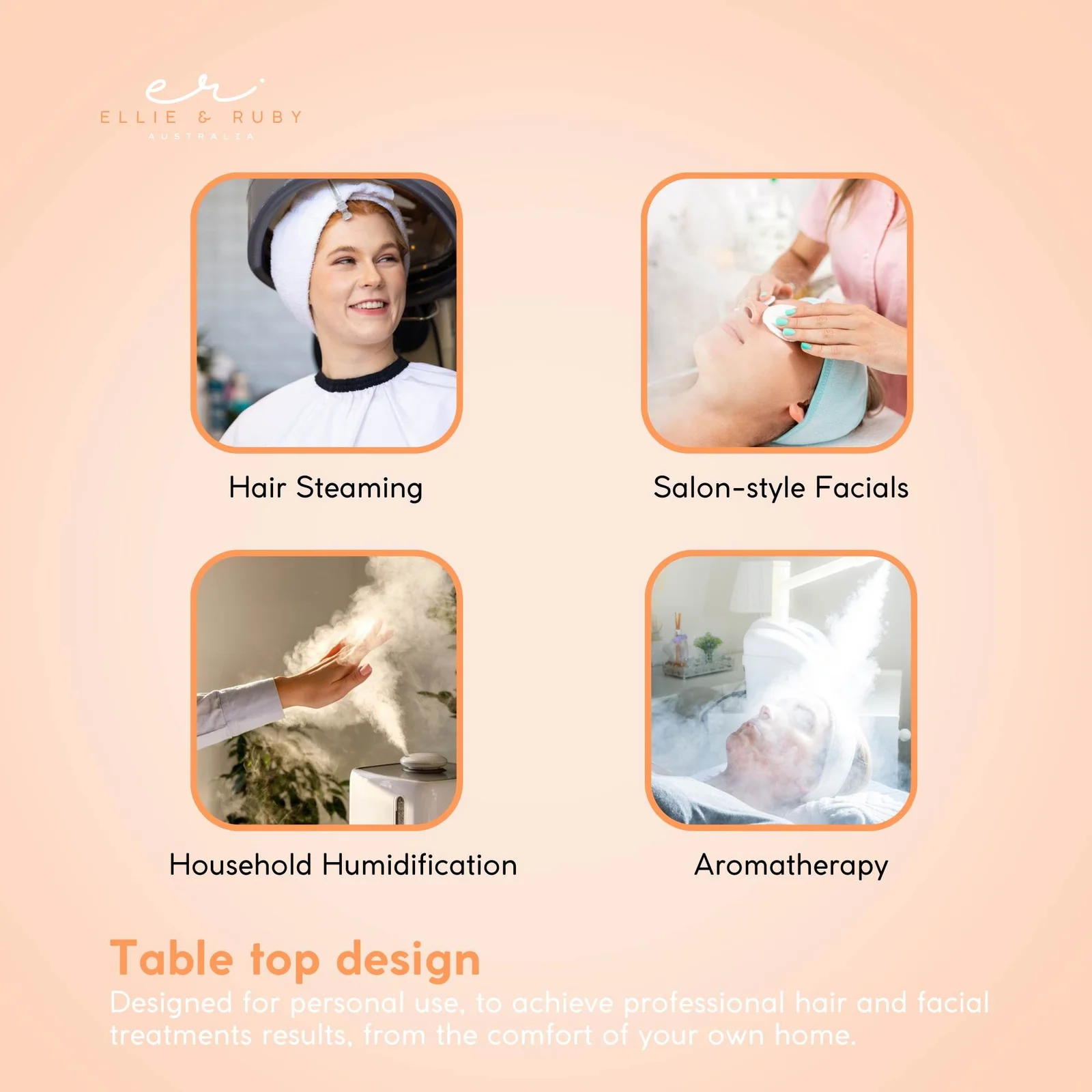 The steamer generates ozone (O3) to accelerate hair care treatments and dyes, and assist skin to deeply penetrate facial products by stimulating blood circulation and whilst having a sterilising effect.