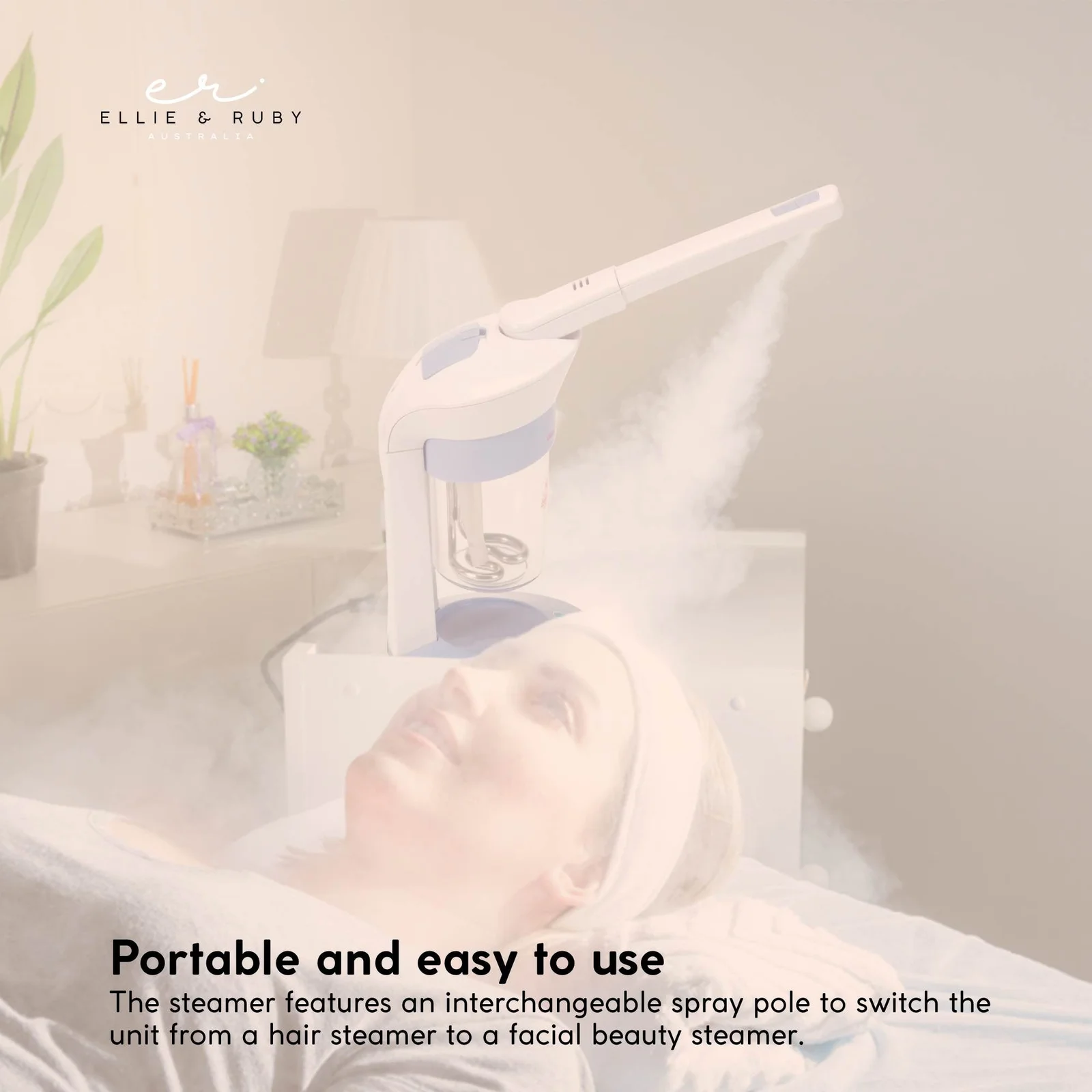 Portable and easy to use, the steamer features an interchangeable spray pole to switch the unit from a hair steamer to a facial beauty steamer.