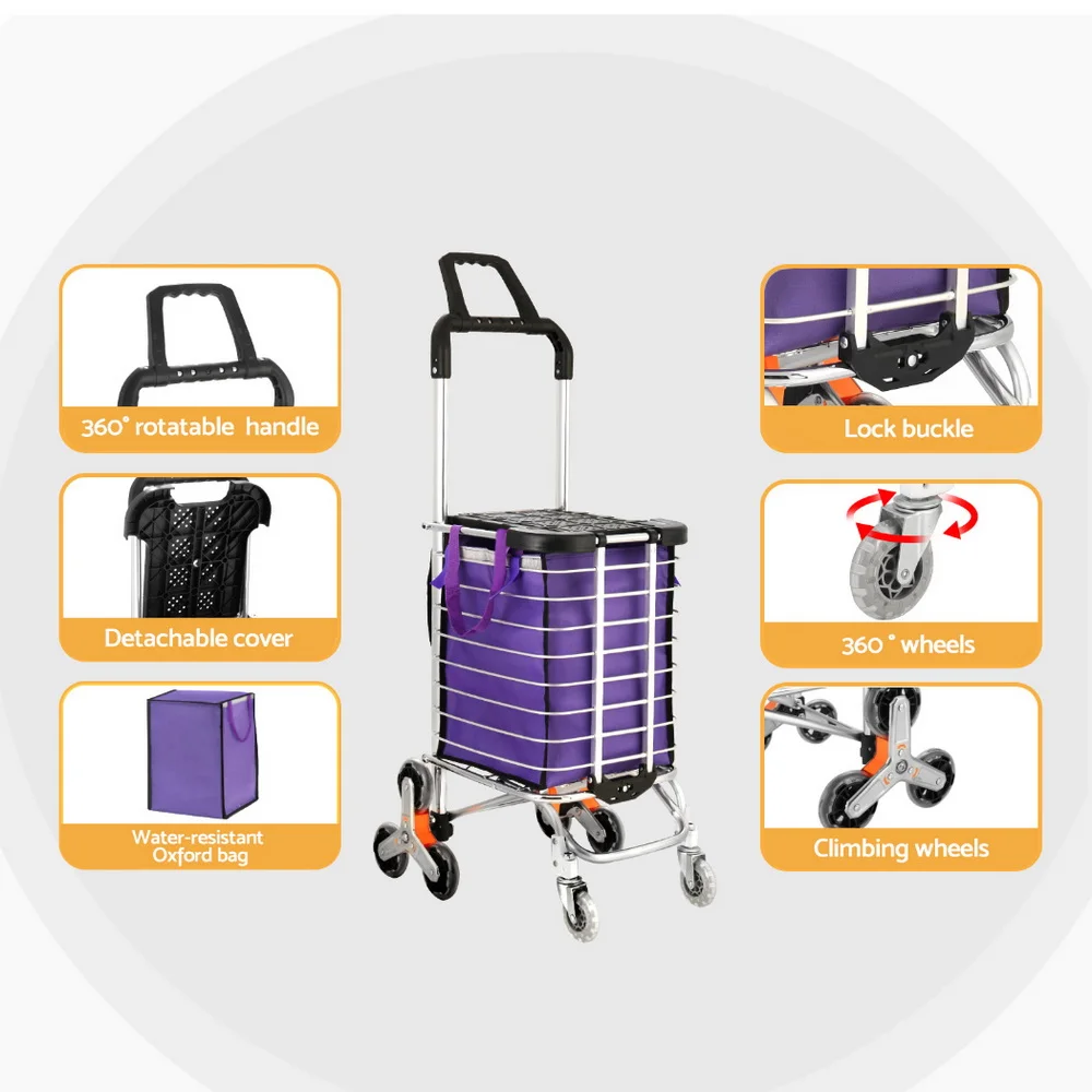 Shopping has never been easier with the Emajin Foldable Shopping Trolley. Made from a sturdy aluminium frame with an Oxford cloth cover, the trolley is water and wear-resistant for shopping in any condition. The sturdy, lightweight wheeled design lets you easily carry your weekly shop, preventing tired arms and legs. Stair climbing wheels make easy work of carrying your groceries up and down staircases. The basket has a weight capacity of 20kgs to fit any kind of groceries, while the lid can hold an additional 70kgs. Best of all, you can easily clean, fold and store the trolley in the cupboard, garage or car for your next use. Get your shopping done in comfort with the Emajin Foldable Shopping Trolley.