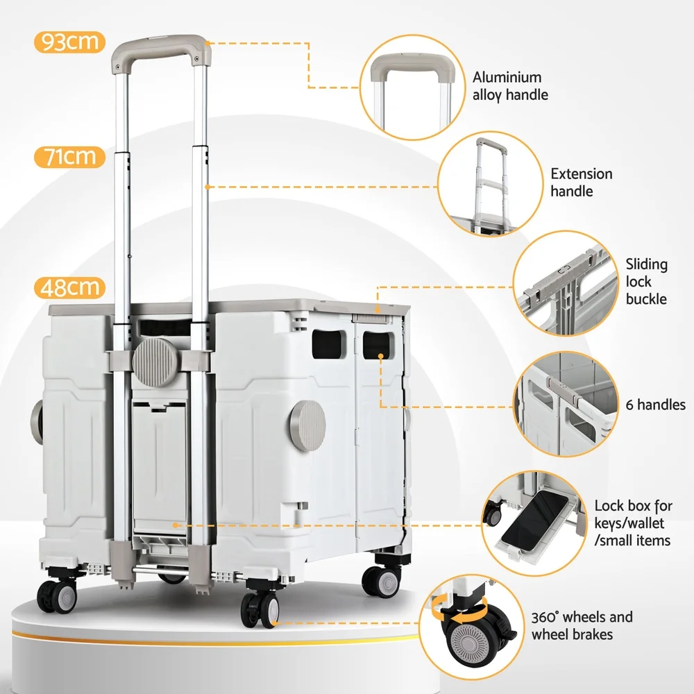 Shopping has never been easier with the Emajin Foldable Shopping Trolley. Made from rigid PP plastic with an aluminium alloy handle, the trolley is water and wear-resistant for shopping in any conditions. The sturdy, lightweight wheeled design gives you 360-degrees of swivel and lets you easily carry your weekly shop, preventing tired arms and legs. The basket has a weight capacity of 70kgs to hold any kind of groceries. Easily lift and move with six in-built carry handles. Best of all, you can easily clean, fold and store the trolley in the cupboard, garage or car for your next use. Get your shopping done in comfort with the Emajin Foldable Shopping Trolley.