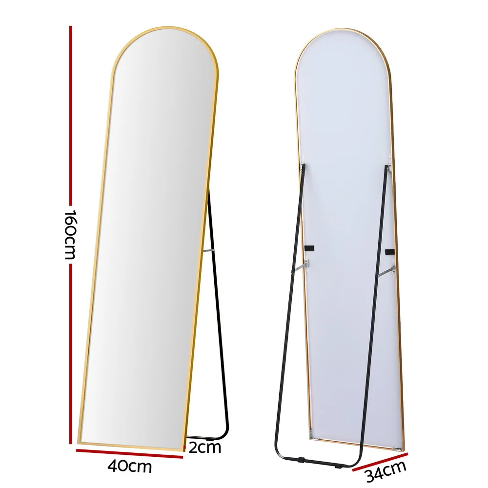 Get a complete head-to-toe view with the Embellir Full Length Mirror. This stunning arch mirror features a slim gold frame, perfect for modern decor. Its versatile design allows it to be used freestanding with the built-in stand or leaned against a wall. Shatterproof glass ensures safety and clarity.
