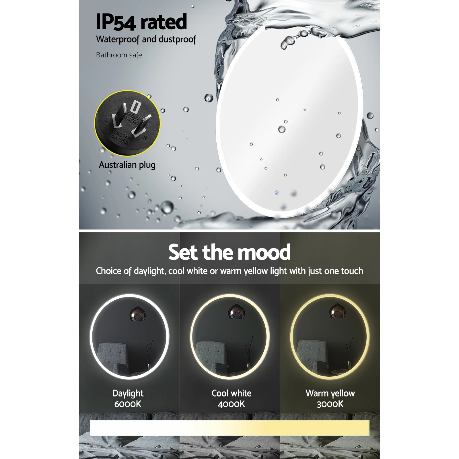 Fairest beauty looks even better with our Embellir LED Mirror. With it large 80cm diameter, the mirror is strong and made to last. It also features an energy-efficient LED light strip that goes around the circumference of the mirror to add vivid illumination to its reflections. The waterproof LED strip has a longlasting working lifespan of up to 50,000 hours. The light can be easily turned on and off with just a touch switch. Or long press to change the brightness. Better still, the rapid defogging mirror surface means that you can keep the mirror in the bathroom without needing to wipe it up after every hot shower. Not least, the mirror also includes wall mounting accessories for an easy install.