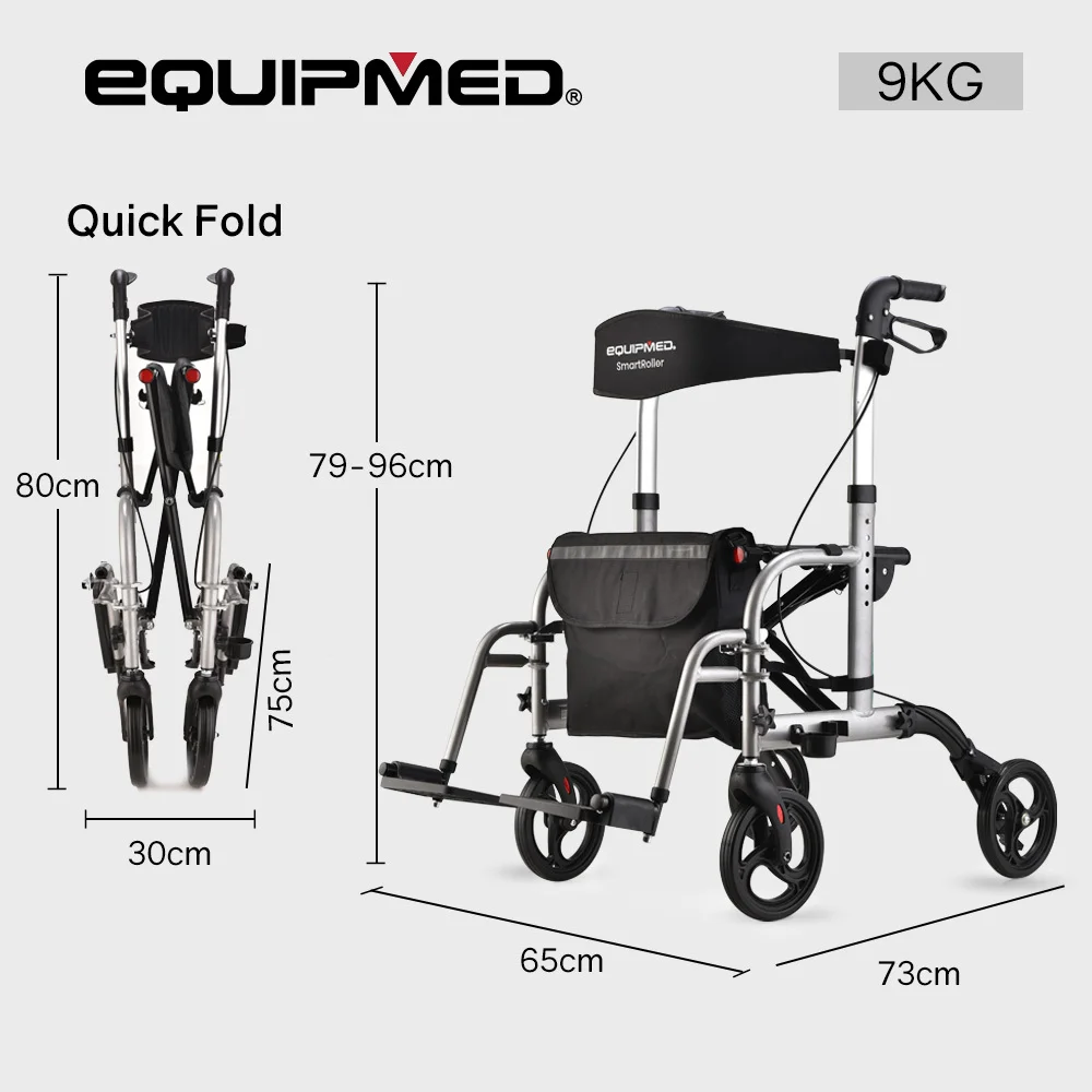 Practicality, reliability and comfort is required for freedom and confidence � and the Equipmed SmartRoller 2-in-1 Rollator and Transit Wheelchair ticks all the boxes. Independence is only a step away thanks to the stylish aluminium frame that only weighs 9kg but offers the strength to support up to 135kg.
