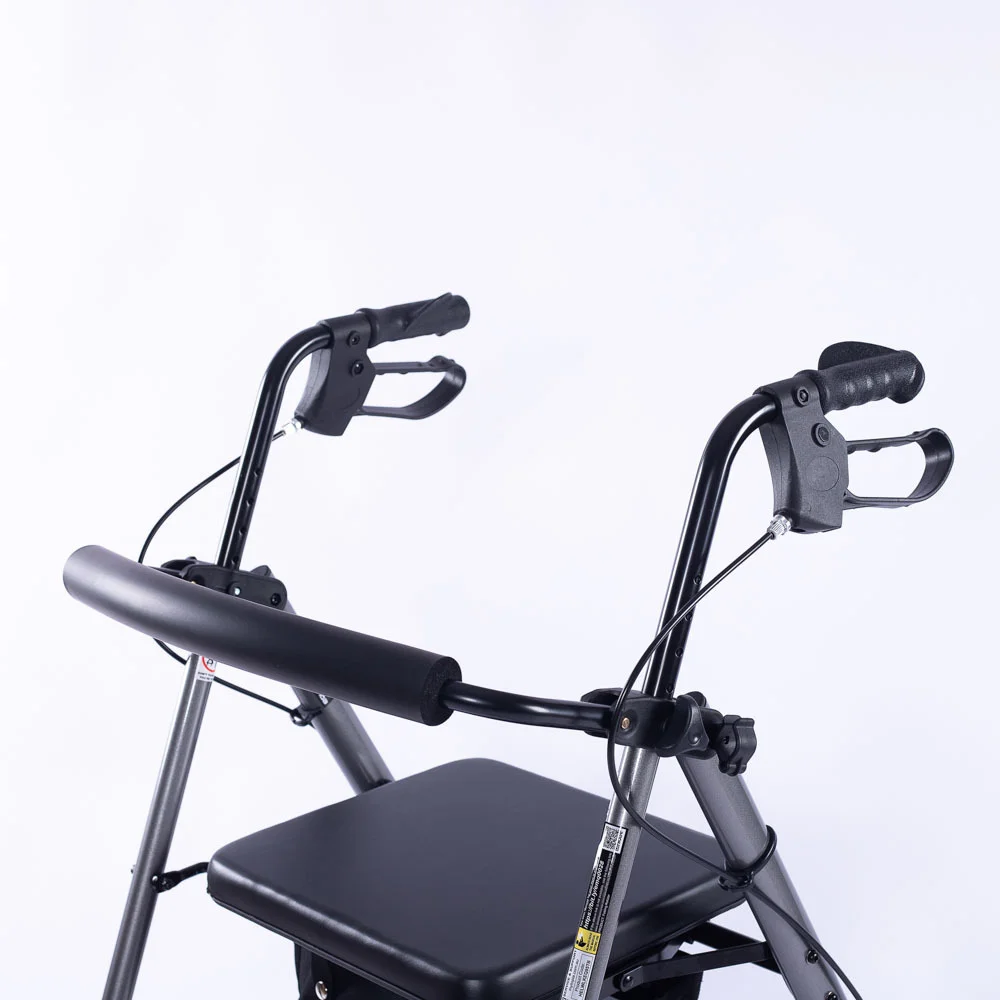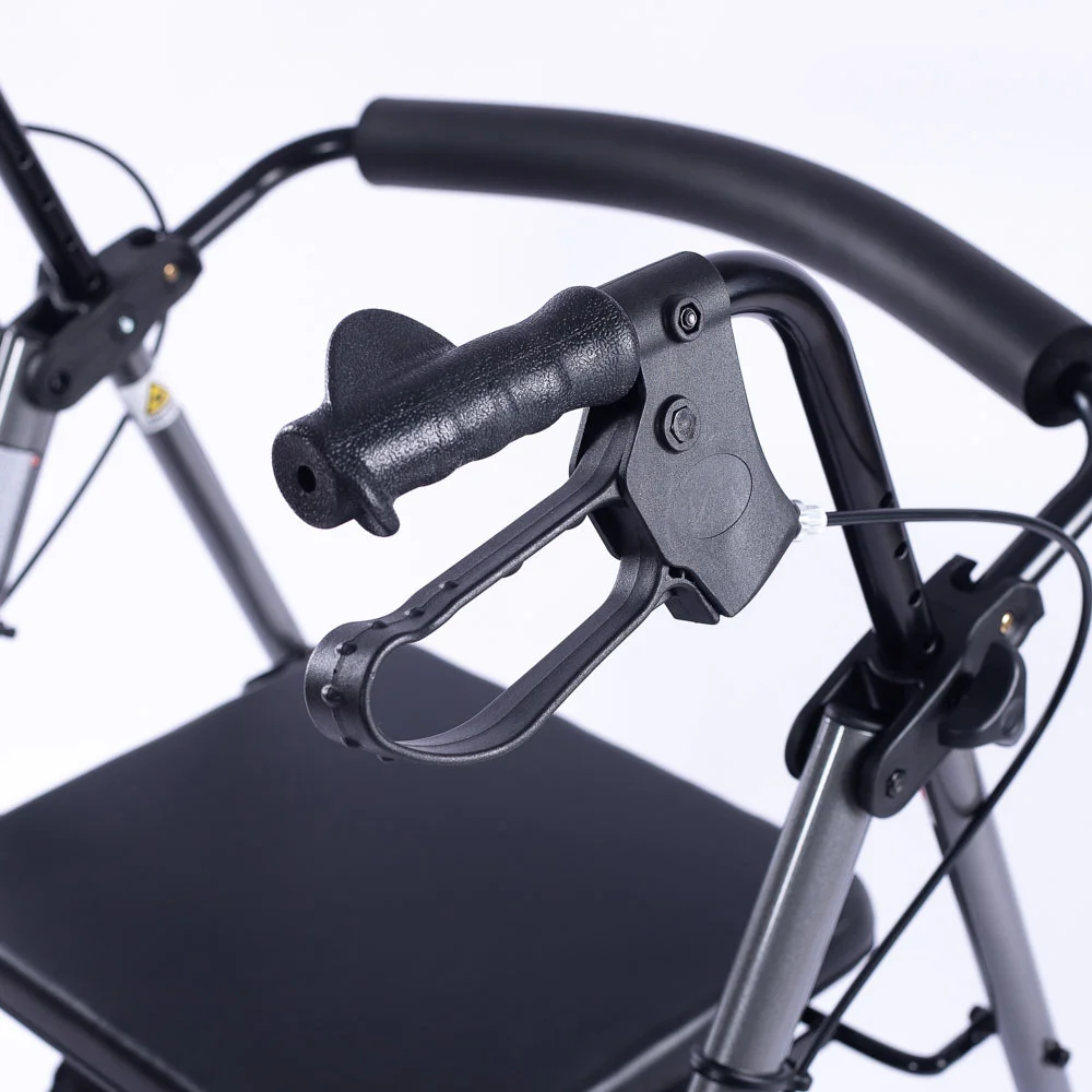 With dual-action braking and parking handbrakes, adjustable handle height, ridged grips, padded seating and a padded contoured backrest, your Equipmed rollator offers great ergonomics and comfort.