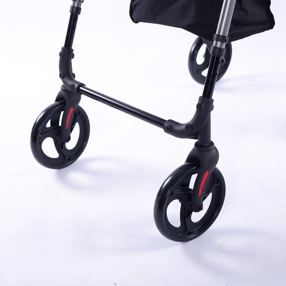 Rollators are all about practicality, reliability, comfort and smooth mobility - and the Equipmed ticks all the boxes. Not only does it feature an ultra-light anodised aluminium design, dual-action loop brakes and superior ergonomics; with a storage compartment as well as a waterproof in-seat storage compartment, it also gives you plenty of room for shopping.