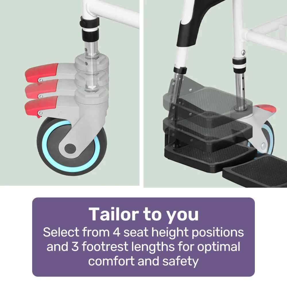 The Equipmed Rolling Commode Toilet Chair is an easy, convenient and practical way to accomplish all of your toileting needs with care and dignity, whether for you or a loved one.