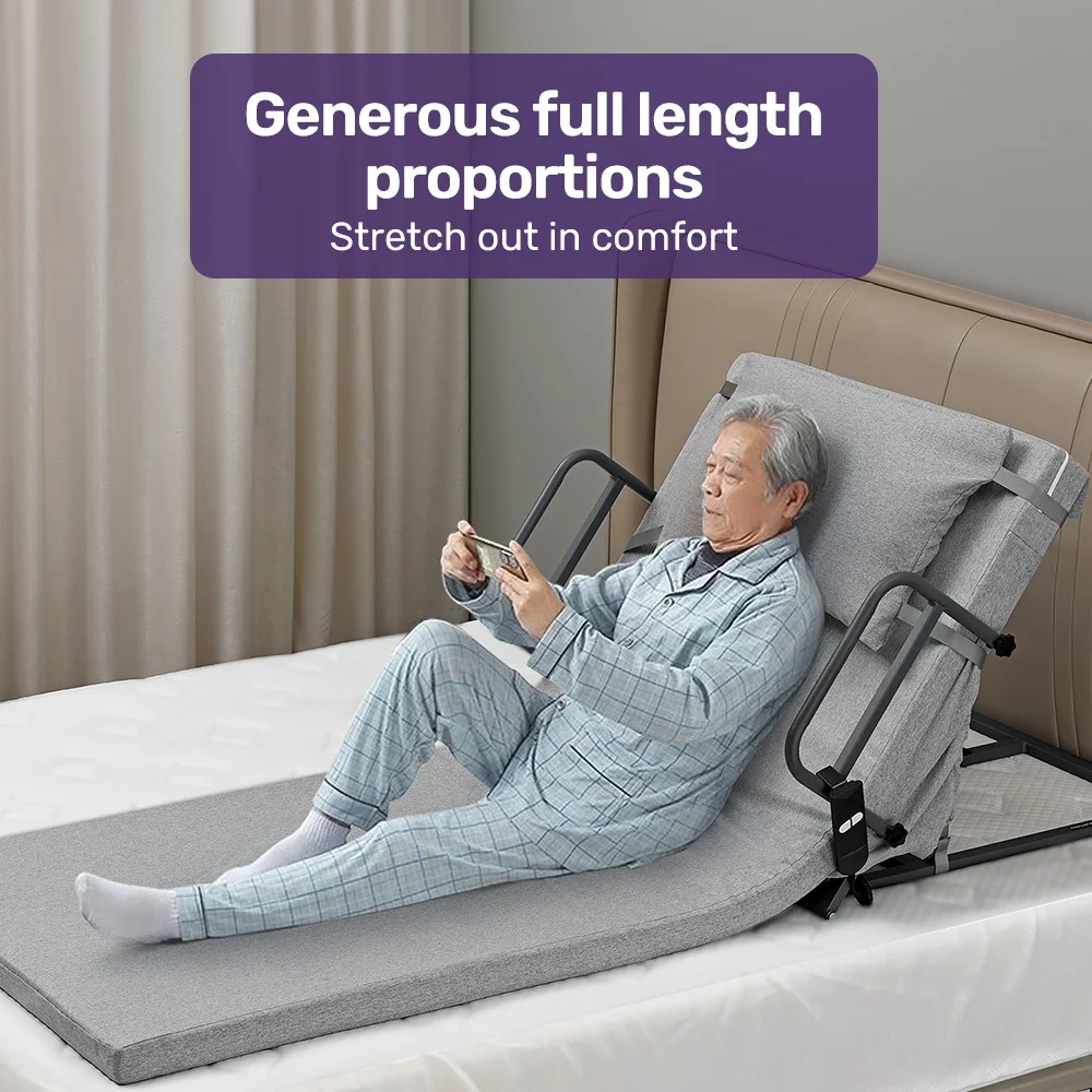 The backrest is outfitted with plush, comfortable cushioning covered in soft, machine-washable fabric, offering both comfort and convenience. You also have the option to attach side barriers to maintain safety without compromising usability. These have fabric covers with a handy pocket that is perfect for storing personal items, like a phone or the remote control. The Equipmed Electric Adjustable Backrest seamlessly enhances daily life with functionality and ease.