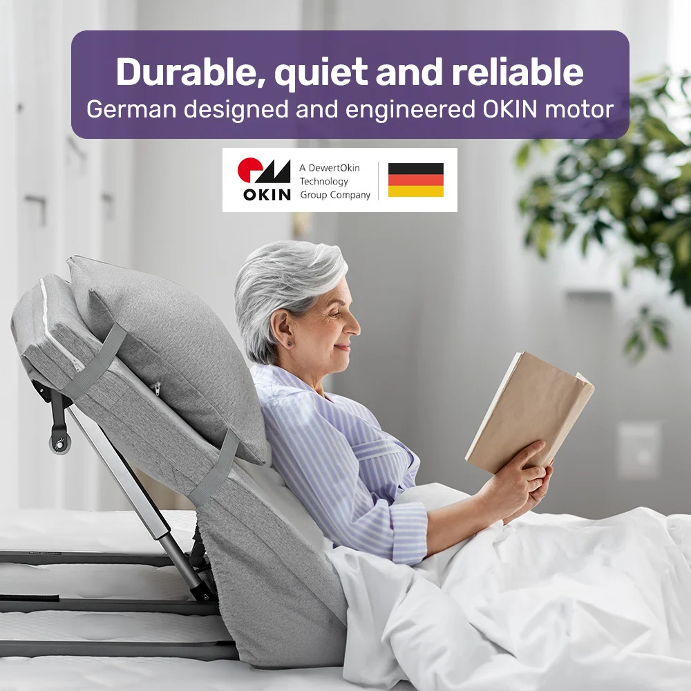Equipmed Electric Adjustable Bed Backrest, German-Engineered Power Lifting Back Support with Remote Control, Full Length, Grey
