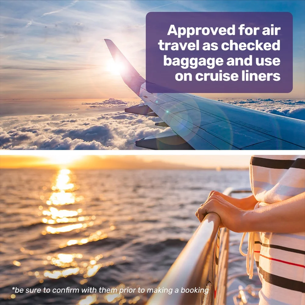 APPROVED FOR MOST AIRLINES AND CRUISE LINERS