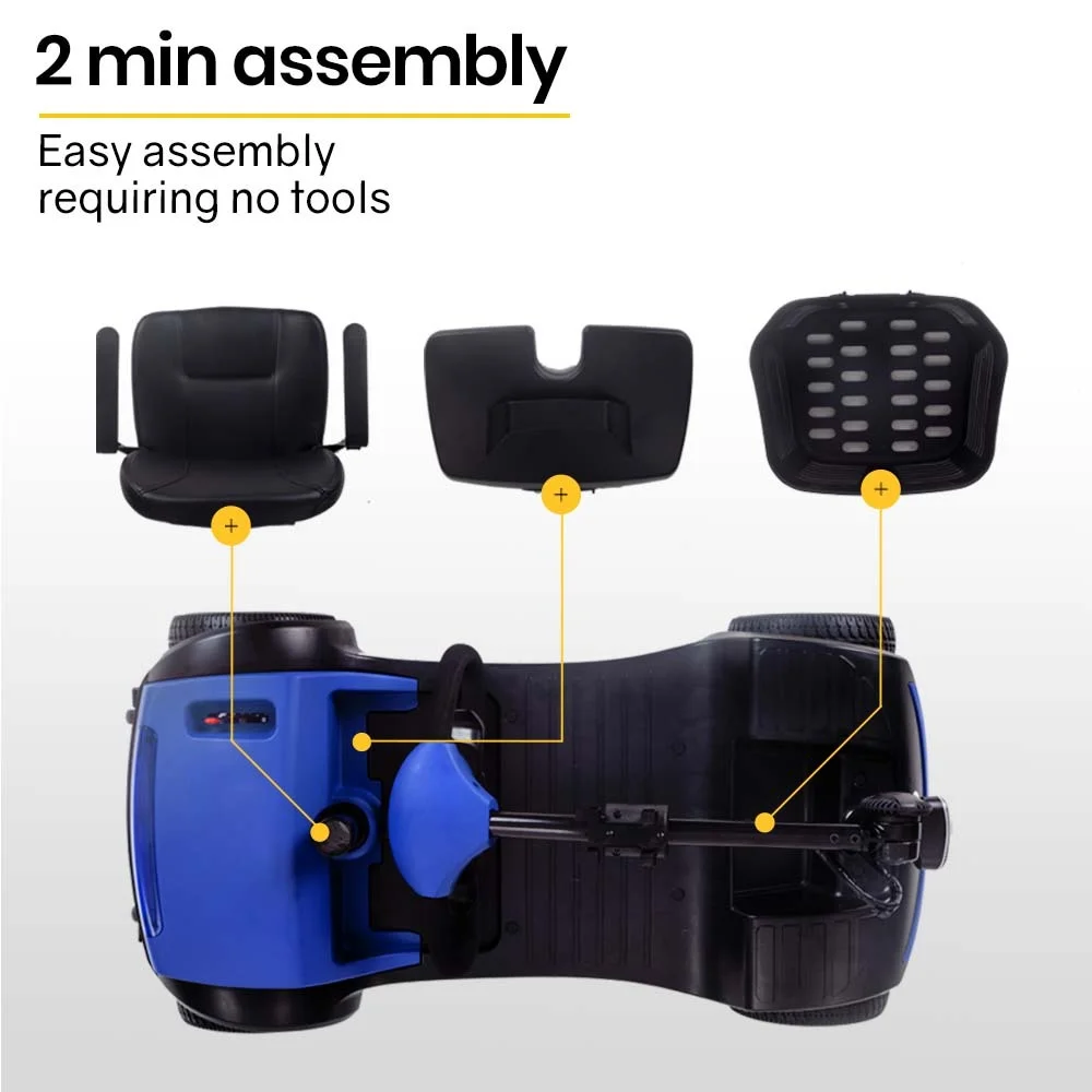 Assembly is straightforward with only the seat and armrests needing to be attached. The seat and battery pack are easily removed to make the scooter lighter and more compact for lifting into a car boot. Occupants of up to 120kg can be accommodated, which is a testament to the sturdy design. If you're seeking a smart solution for your transportation needs, the Equipmed SmartRider Electric Mobility Scooter will surely fit the bill.