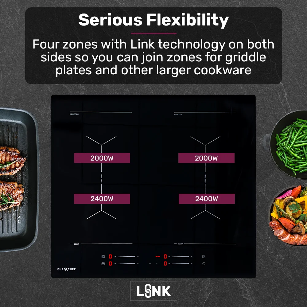 With induction cooking technology, heat is instantly directed into the base of the cookware for the ultimate efficiency – and with a boost function we’re talking seriously fast cooking! This model comes with Link technology on all zones. This superb feature allows for two zones to be combined into one to cater for larger cookware, such as griddle pans.