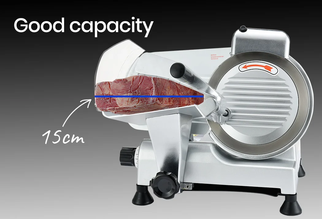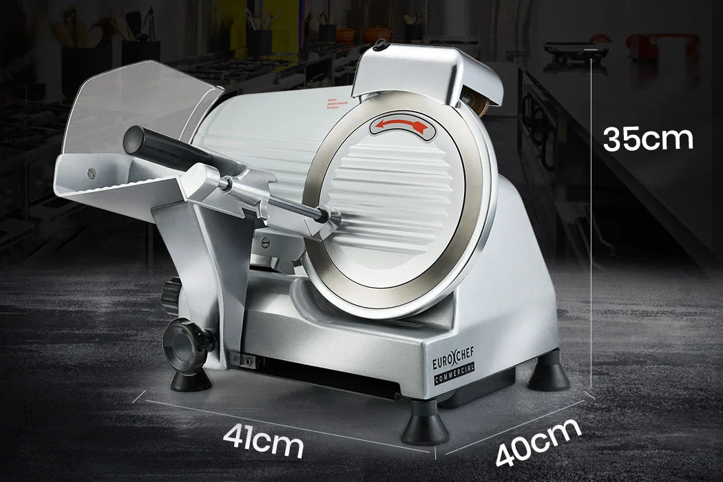 Eurochef Commercial Food Slicers are renowned for robust design, quality, and superb results, and the EUC-CMS-2 Electric Meat Slicer is no exception. It's crafted with food industry grade stainless steel components and boasts 280W copper core motor, making it a powerful, dependable machine with a compact footprint!