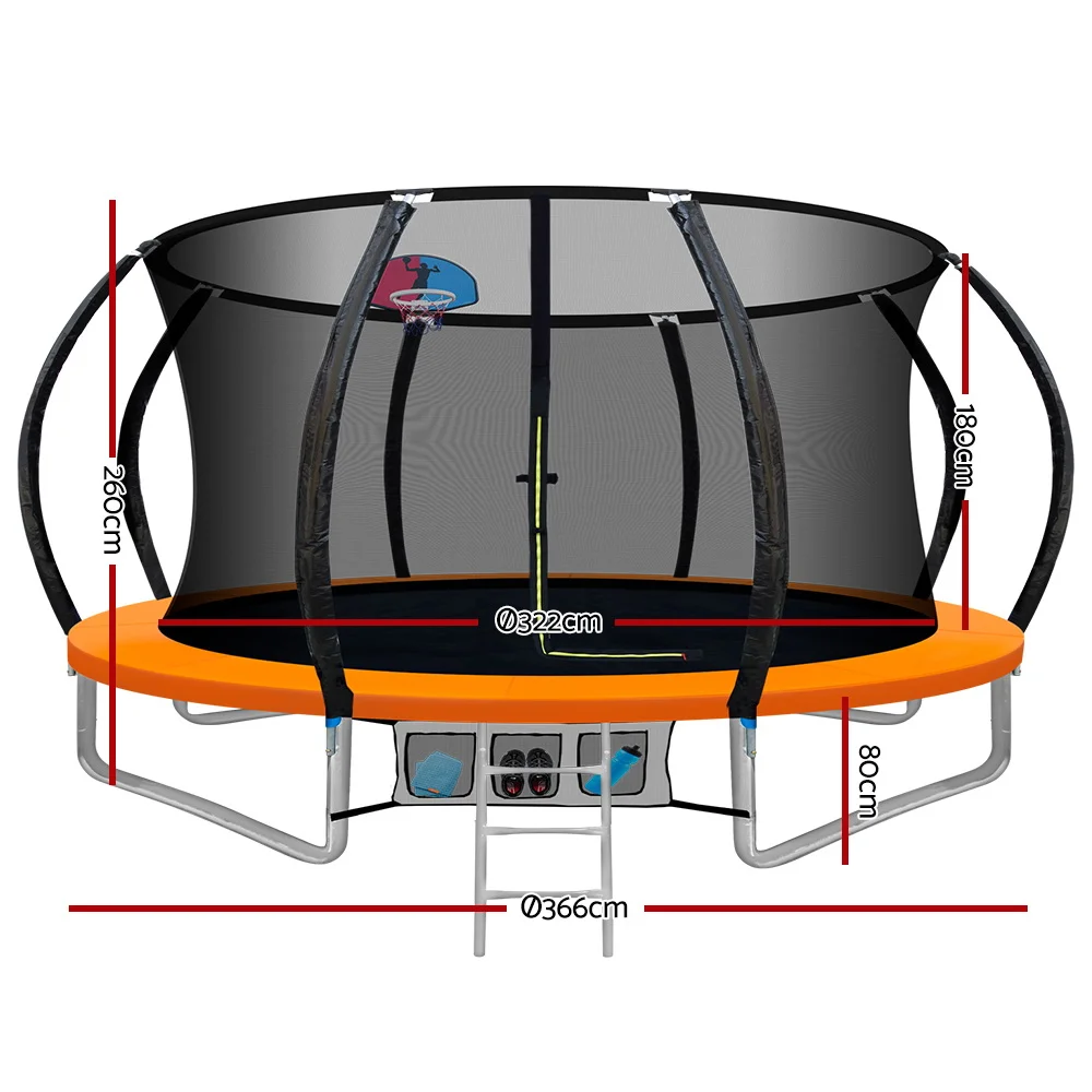 Kahuna 12ft Outdoor Trampoline Kids Children With Safety Enclosure Pad Mat Ladder Basketball Hoop Set - Blue