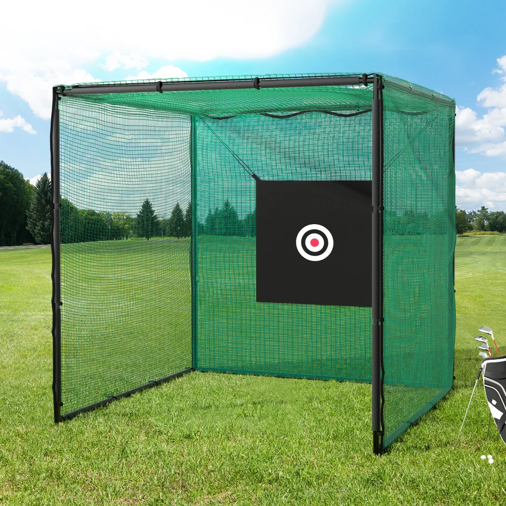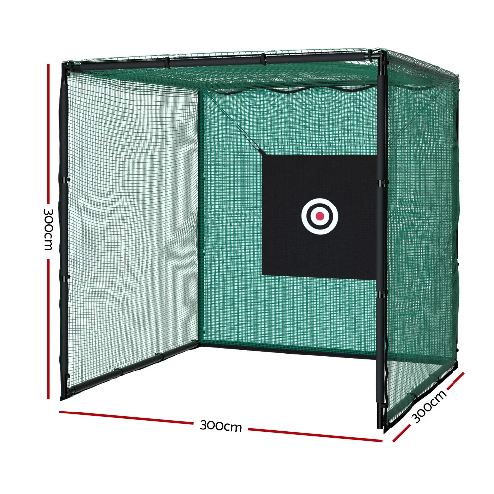 Practice your tennis swing in peace with an Everfit 3m Golf Practice Cage. The spacious cage is built for multipurpose use with sturdy knot-less netting on a strong steel frame construction with heavy duty tubes. Use it to practice golf, tennis, football, baseball or any sports that require precise aim. The cage is weather resistant and can be left outside all year round, or you can move it indoors for practice in the gym or playroom. Includes a free cloth with a target so you can practice your precise aim. It is easy to set up with our step-by-step guide, so you can put it together anywhere for a fun and sporty afternoon. Get your game on and enjoy fitness your way with an Everfit 3m Golf Practice Cage.
