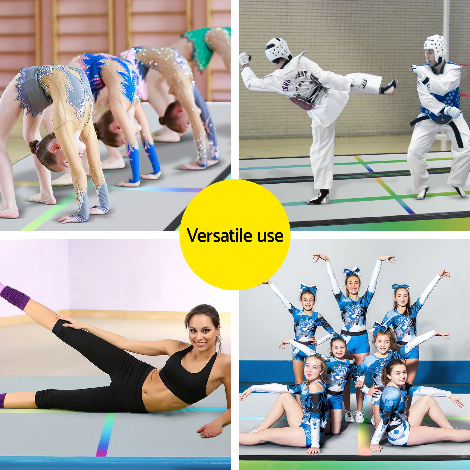 Great for training, eg. gymnastics, martial arts, yoga, cheer leading and more