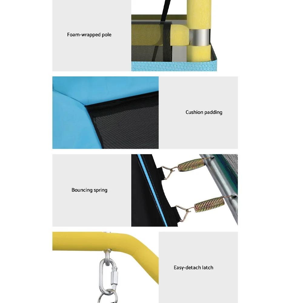 Foster your children's love of exercise with an Everft 6ft Trampoline. The trampoline is designed for children aged 3 to 8 years old and has a 2-in-1 design for double the fun: you can use it as a trampoline or as a jumping swing. Made from marine-grade hot-dip galvanized steel, the frame is incredibly strong and resistant to corrosion. The base is made from an anti-graze mat that is UV-resistant and is surrounded by cushioned padding. Posts are foam-wrapped for safety, and the entire trampoline is enclosed in a safe mesh netting with a zipped entrance. Heavy-duty ropes will hold your children as they jump and swing the day away. Your children can enjoy bouncing in safety and comfort any time with the Everfit 6ft Trampoline.