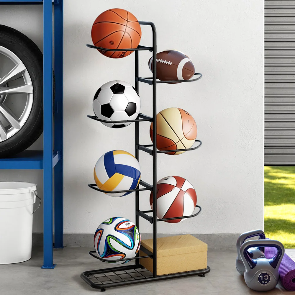 Organize sports gear effortlessly with Everfit's 7-tier Ball Storage Rack. This heavy-duty Sports Equipment Organizer features sturdy steel frames, ideal for storing basketballs, footballs, or volleyballs in garages, gyms, or basements. The design ensures durability, while easy assembly saves time. Perfect as a space-saving Ball Holder for indoor/outdoor use.