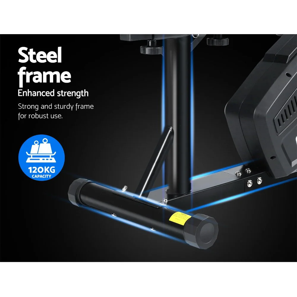 Get an effective workout in the comfort of your home while watching TV or listening to your favourite music. The Everrfit Recumbent Exercise Bike is just perfect to have all these at once. Designed for people who prefer a low or non- impact exercise regime, our recumbent bike provides adequate exercise for the body without causing undue stress and strains on your joints and back. The relaxed seating position actually allows you to balance your body weight better and get your legs and heart to work together in tandem for better blood flow. The LCD display also helps to track parameters easily to let you monitor your health while exercising. The bike itself is constructed of an industrial-strength power-coated steel frame for durability and rust resistance. With up to eight resistance levels, the bike can be adjusted for the desired exercising intensity to suit your workout. Plus, the magnetic flywheel is smooth and runs almost friction-free. Other features include an adjustable seat length, wide and comfortable seat and non-slip protective feet. Not least, the recumbent bike is also easy to transport with two handy wheels for hassle-free moving.