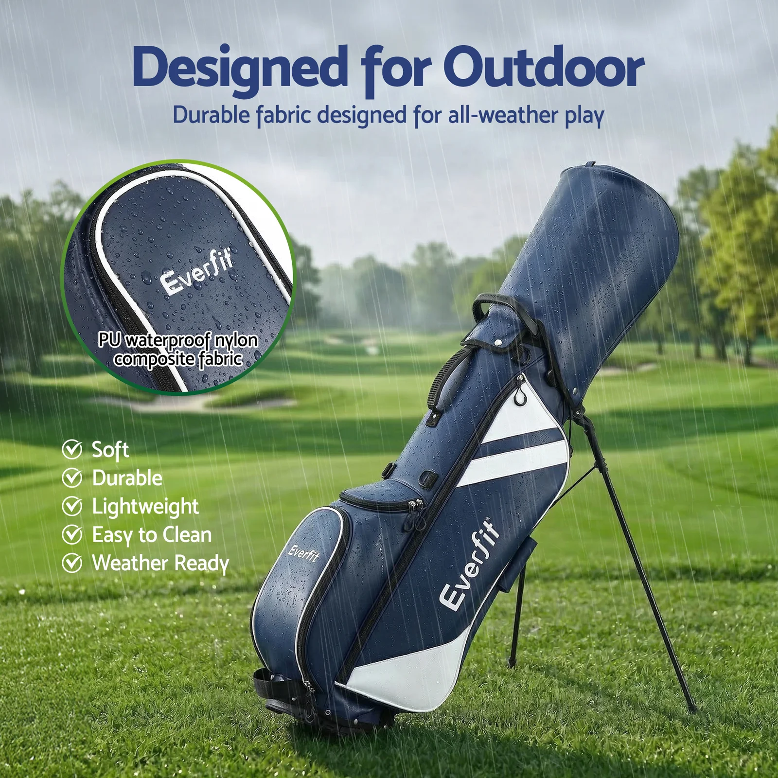 Walk the course easily with the Everfit lightweight golf bag. This golf stand bag features a comfortable dual strap design, independent club divider, and multiple pockets. Built from weather ready PU nylon, this golf carry bag keeps your gear safe and organised in stylish blue.