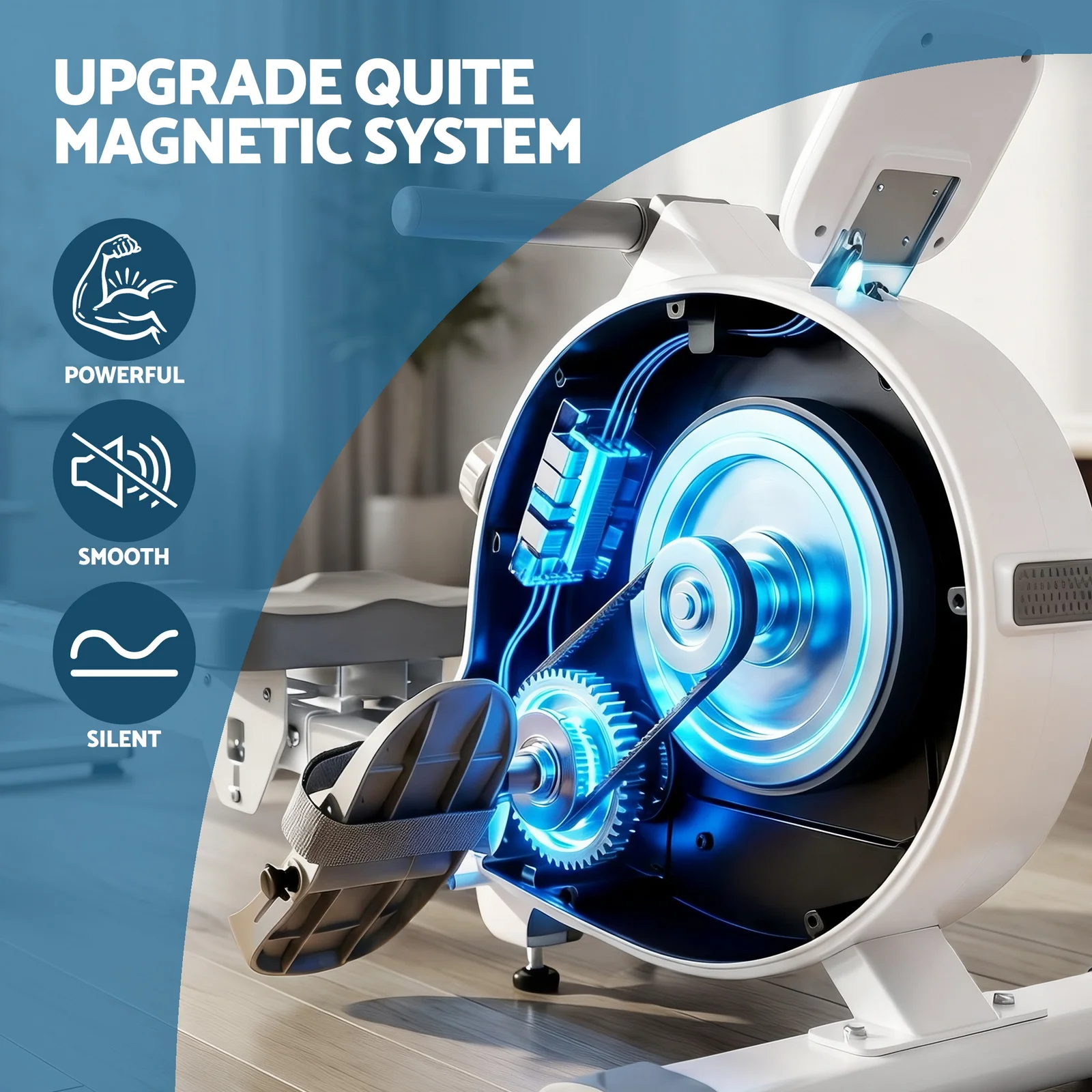 Experience quiet, effective full-body workouts at home with the Everfit Magnetic Rowing Machine. Its innovative magnetic resistance system operates almost silently, perfect for apartments. With 16 levels of resistance, it adapts from gentle warm-ups to intense HIIT sessions. Sync your workout data like distance and calories via the Bluetooth-connected. 90% pre-assembled for quick 20-minute setup. The sleek white and wood-tone Scandinavian design complements your living space, making it a stylish and functional addition to any home gym.