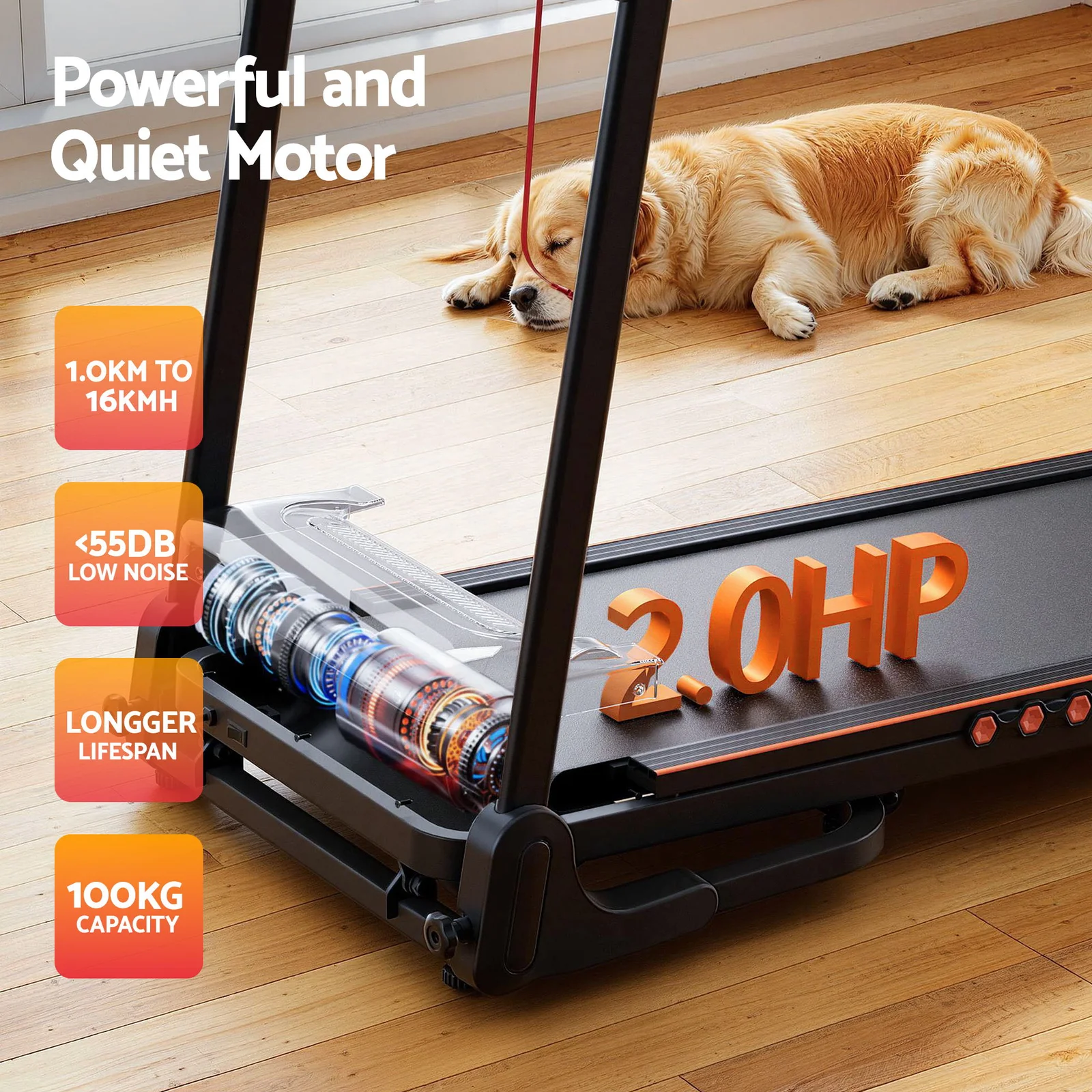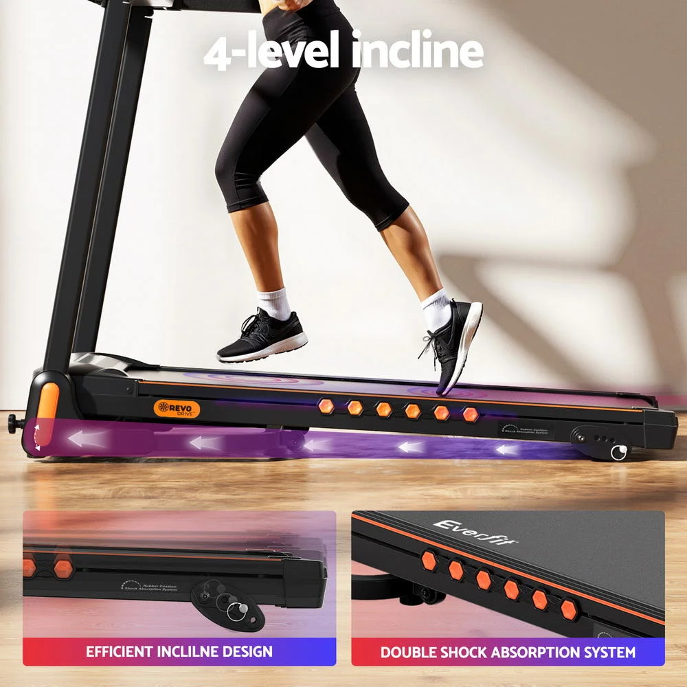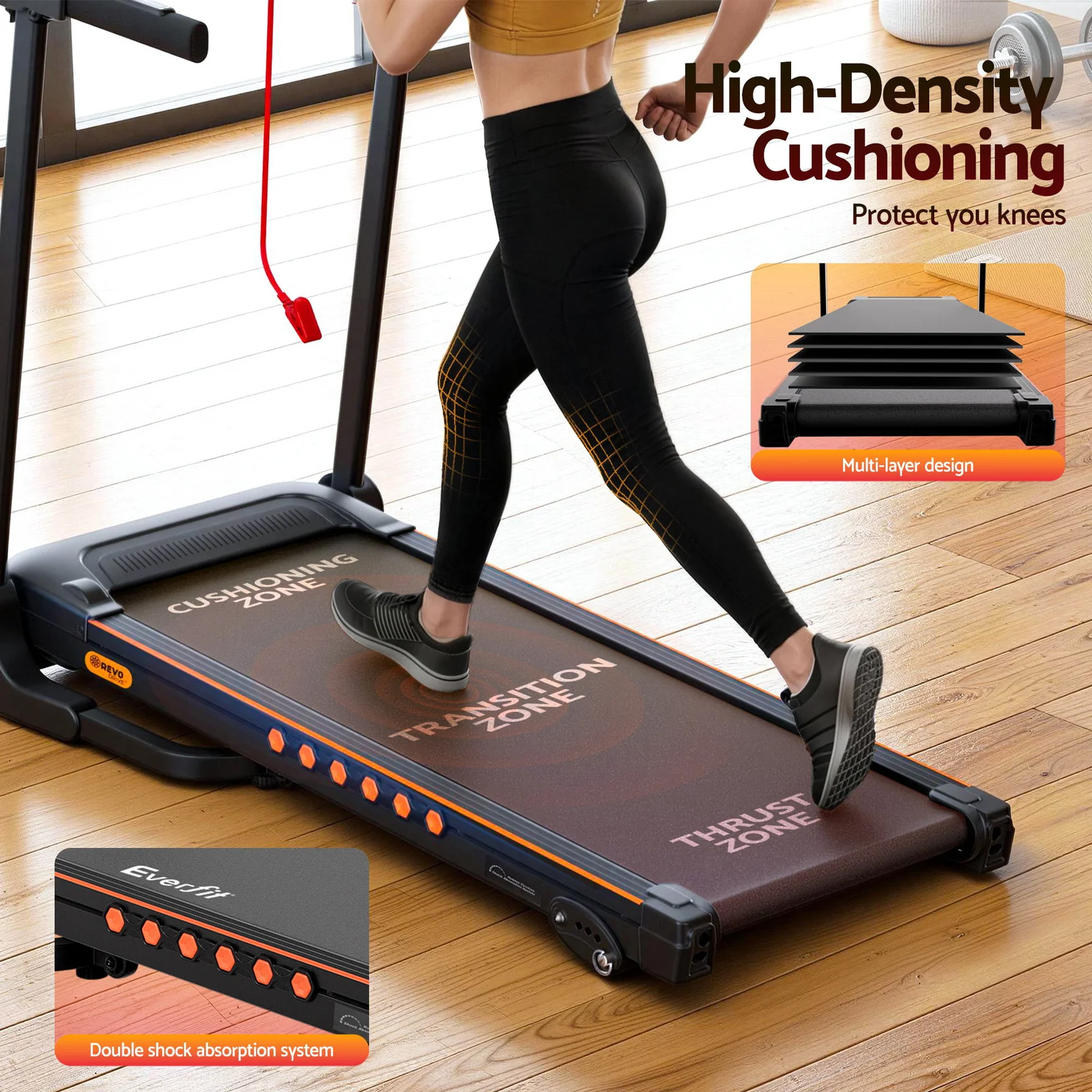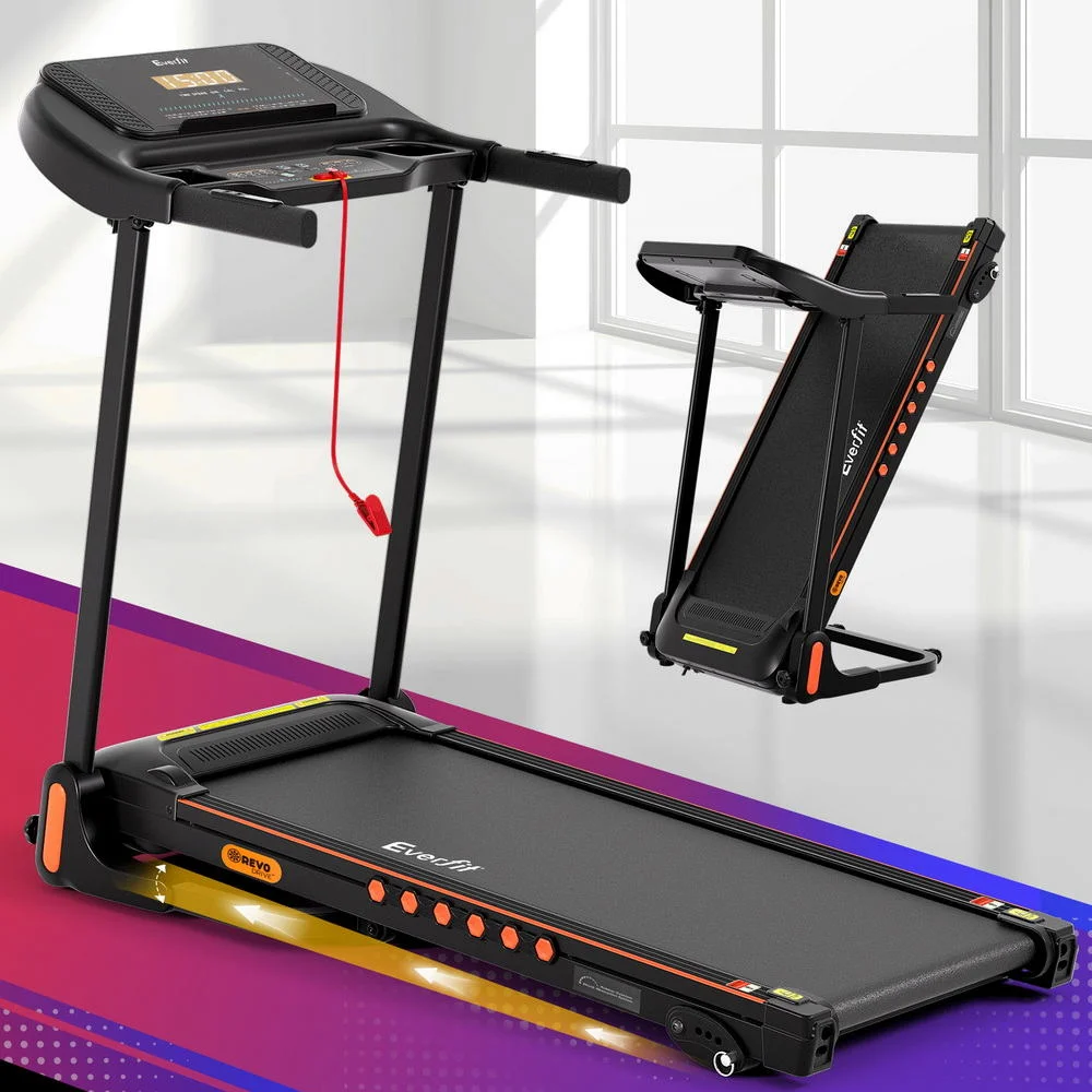 Transform your living space into a year-round fitness sanctuary with Everfit's foldable treadmill. Designed for Aussie homes, this clever machine folds vertically with a smooth hydraulic motion - tucking neatly against walls or into corners when not sweating it out. The cushioned running belt cradles your joints during intense hill simulations or casual strolls, while twin speakers and USB connectivity let you pump through podcasts or playlists.