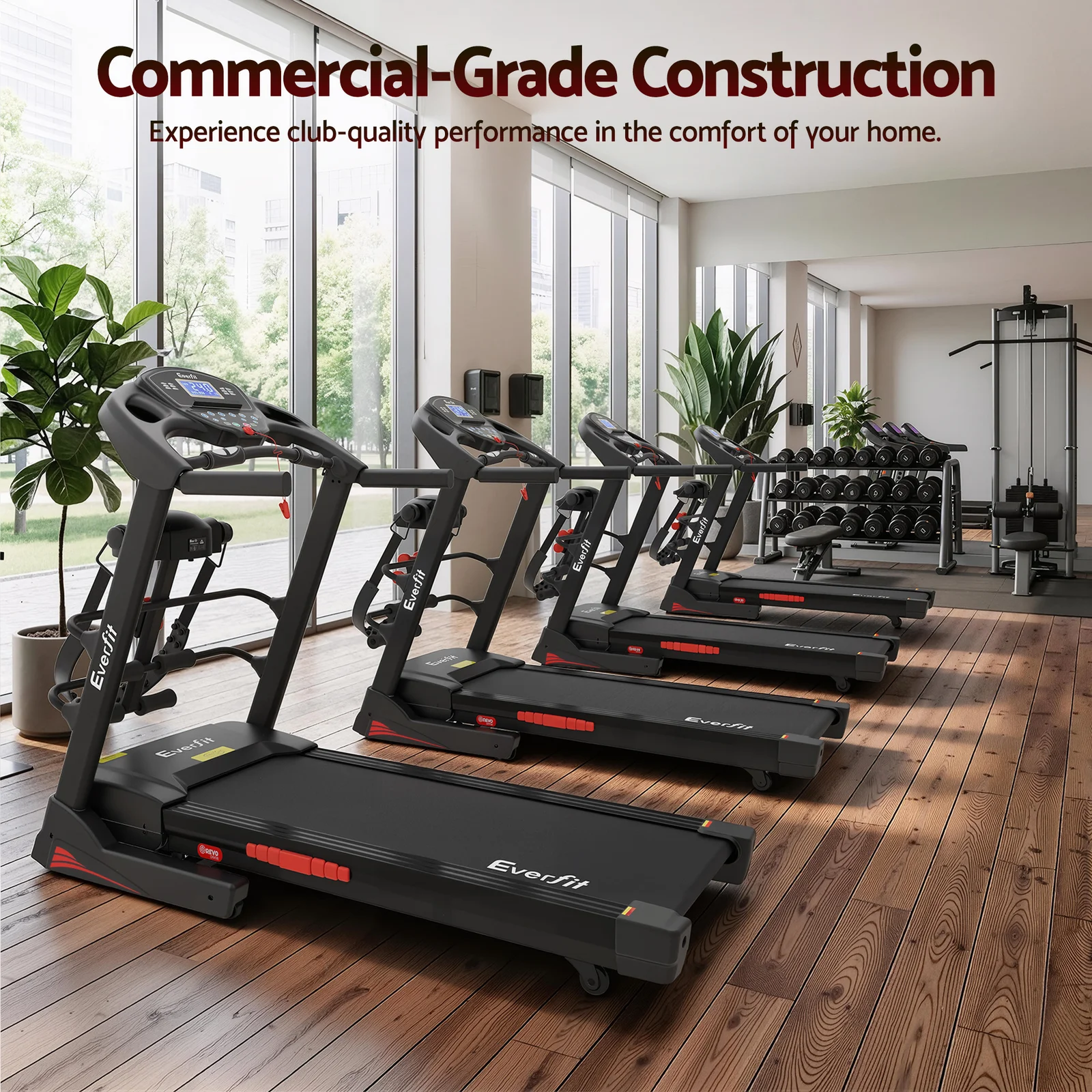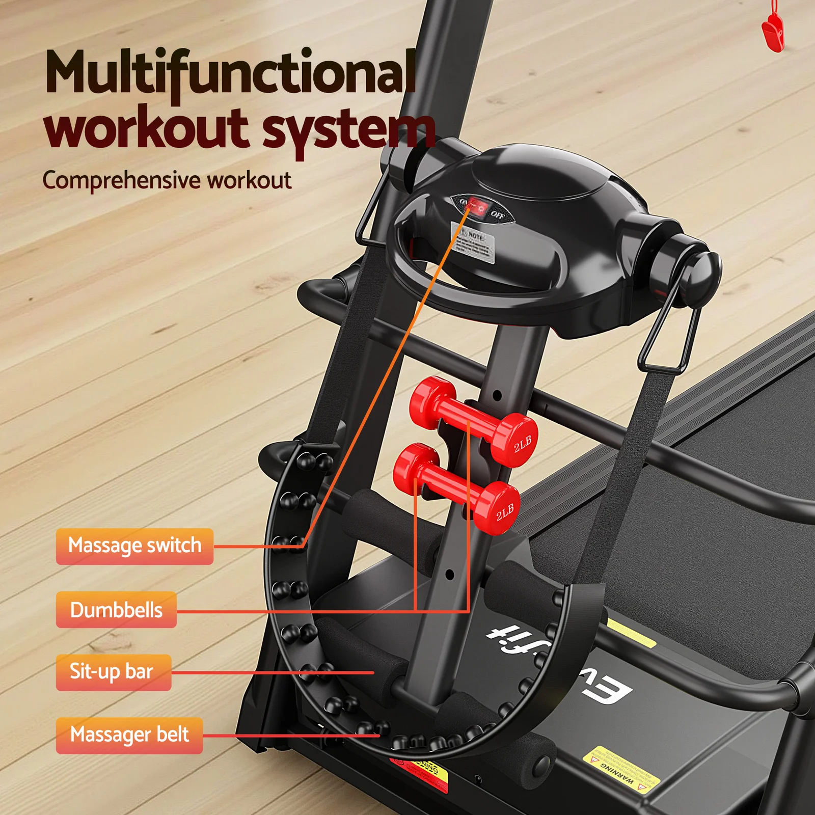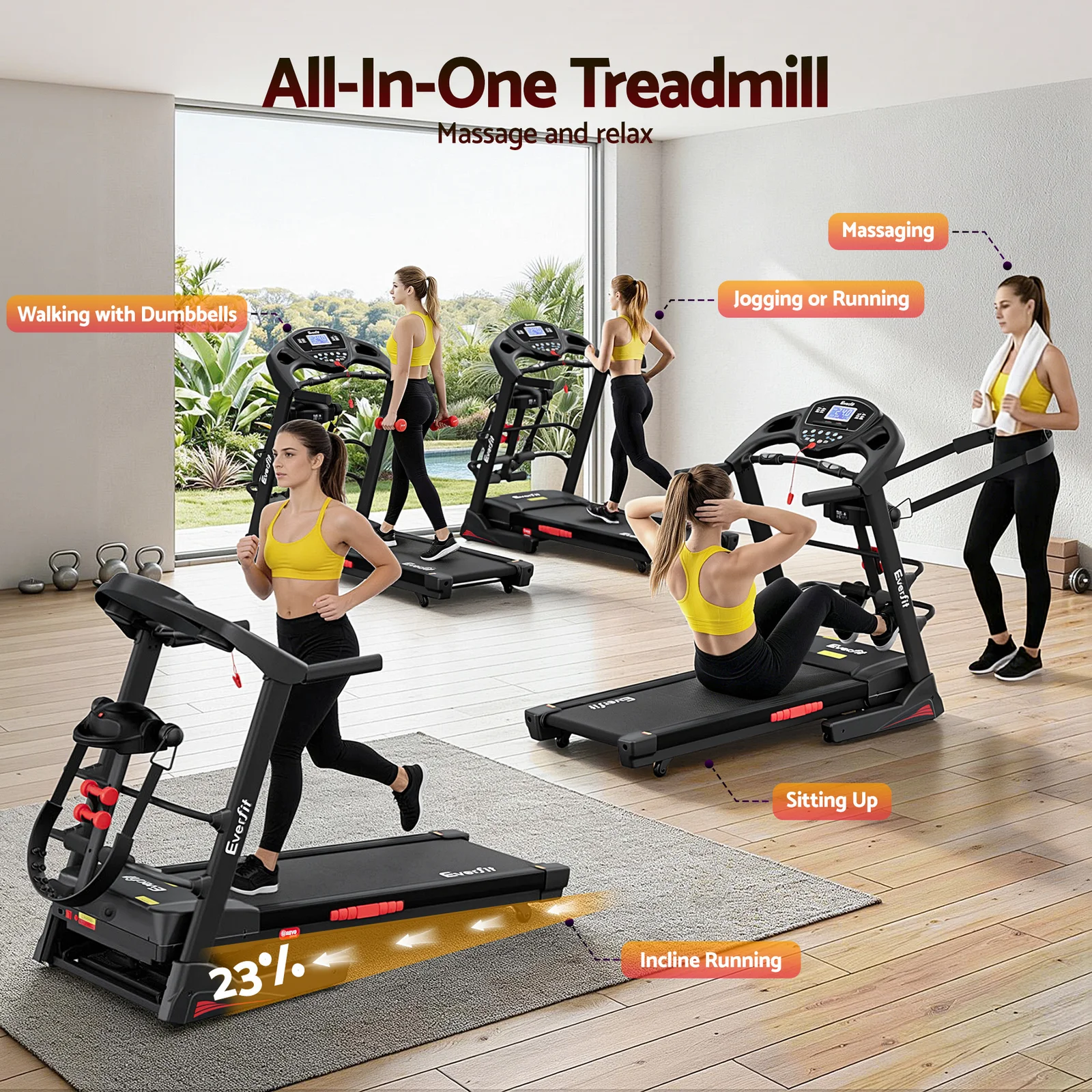 Enhance your workout with the Everfit Treadmill with Massager. Featuring a high-strength composite running board and a solid powder-coated steel frame, it combines reliability with a sleek design.