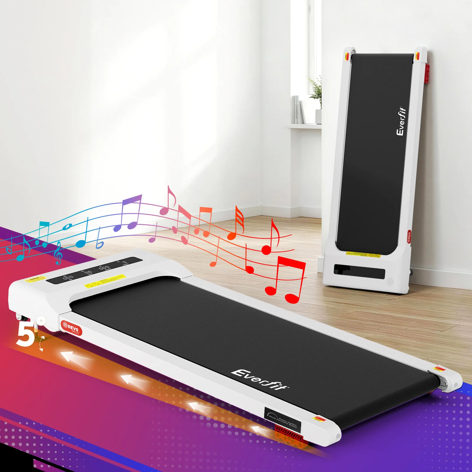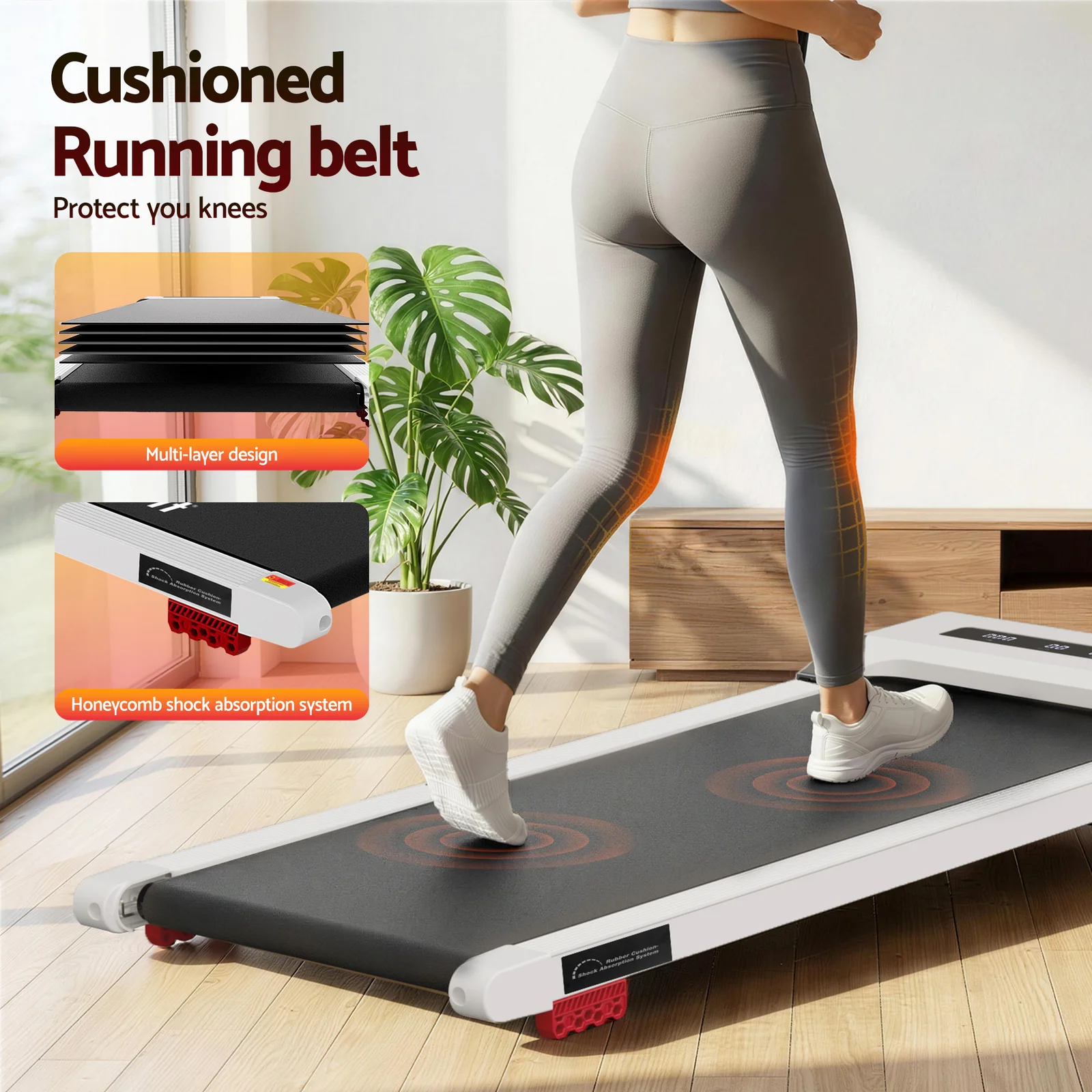 Upgrade your WFH setup with the Everfit Compact Walking Pad - your smart solution for staying active while working or relaxing. This space-savvy treadmill arrives fully assembled and glides smoothly into any home office, sliding neatly under desks when not in use. Experience comfortable walking with three adjustable incline levels and whisper-quiet motor technology. The innovative honeycomb shock absorption cushions every stride while the extra-wide surface keeps you stable during calls or streaming sessions.